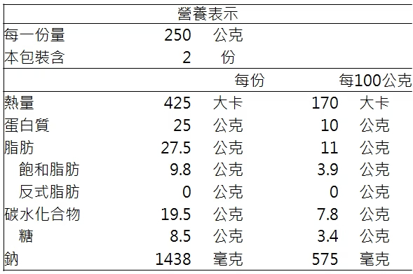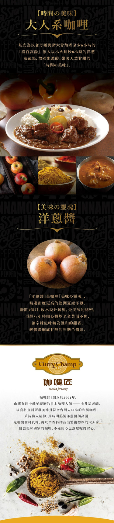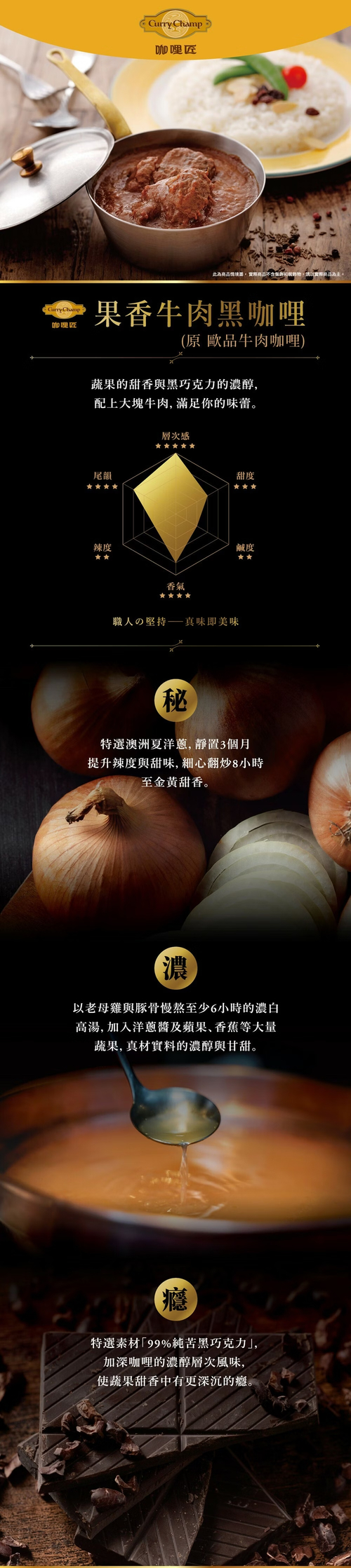雞湯(水、雞骨)、牛肉(美國)、洋蔥醬(洋蔥、紅蘿蔔、大豆油、蒜)、蕃茄丁(切碎蕃茄、蕃茄汁、檸檬酸)、香蕉、奶油(殺菌乳脂)、蕃茄糊[蕃茄泥(蕃茄糊、水)、檸檬酸]、咖哩粉(薑黃、胡荽、葫蘆巴、孜然、橘皮、辣椒、肉桂、茴香、薑、八角、百里香、月桂葉、丁香、肉豆蔻、鼠尾草、荳蔻)、咖哩醬[麵粉、豬油、焦化洋蔥(豬油、洋蔥、水)、乳糖、食鹽、砂糖、第一類普通焦糖色素、番茄粉、香蕉、調味劑(L-麩酸鈉、5'-次黃嘌呤核苷磷酸二鈉、5'-鳥嘌呤核苷磷酸二鈉、琥珀酸二鈉)、醬汁粉(砂糖、糊精、食鹽、洋蔥粉、丁香、咖啡、辣椒、胡椒、肉桂、肉豆蔻、鼠尾草粉、蘋果汁粉)、雞高湯粉(棕櫚油、火雞油、蔬菜泥(菜籽油、洋蔥)、植物性蛋白水解物、香辛料(鼠尾草、胡椒、薑黃))、脫脂奶粉、葡萄糖、酸味劑(檸檬酸、DL-蘋果酸、醋酸鈉、冰醋酸)、香料]、蘋果、鮮奶油(奶脂、牛奶蛋白、鹿角菜膠)、醬油色(水、糖、醬油)、糖色(蔗糖、砂糖、水、鹽)、巧克力(可可、糖、肉桂、薑、香草豆莢)、鹽、大豆油、醋[酒醋、葡萄汁、焦糖色素(亞硫酸-銨鹽焦糖)]、調味劑(L-麩酸鈉、鹽)、黑胡椒、肉桂、紅椒粉、眾香子粉