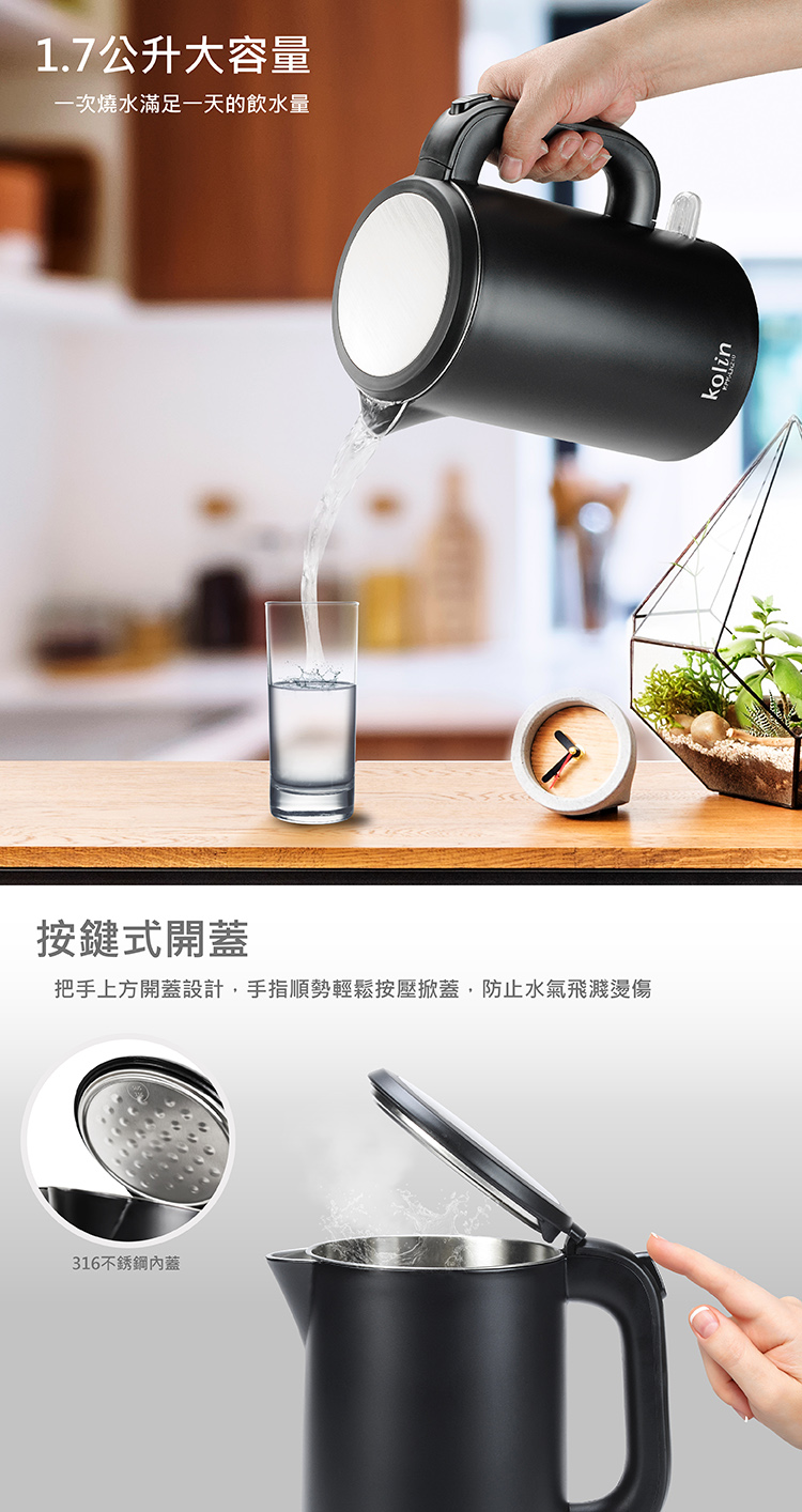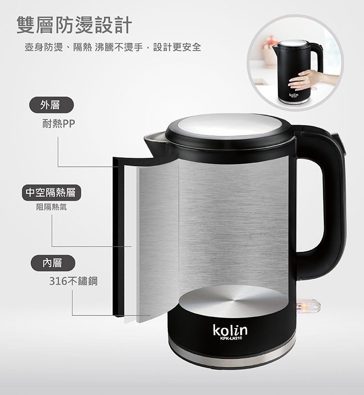 雙層防燙壺身,安全不燙手