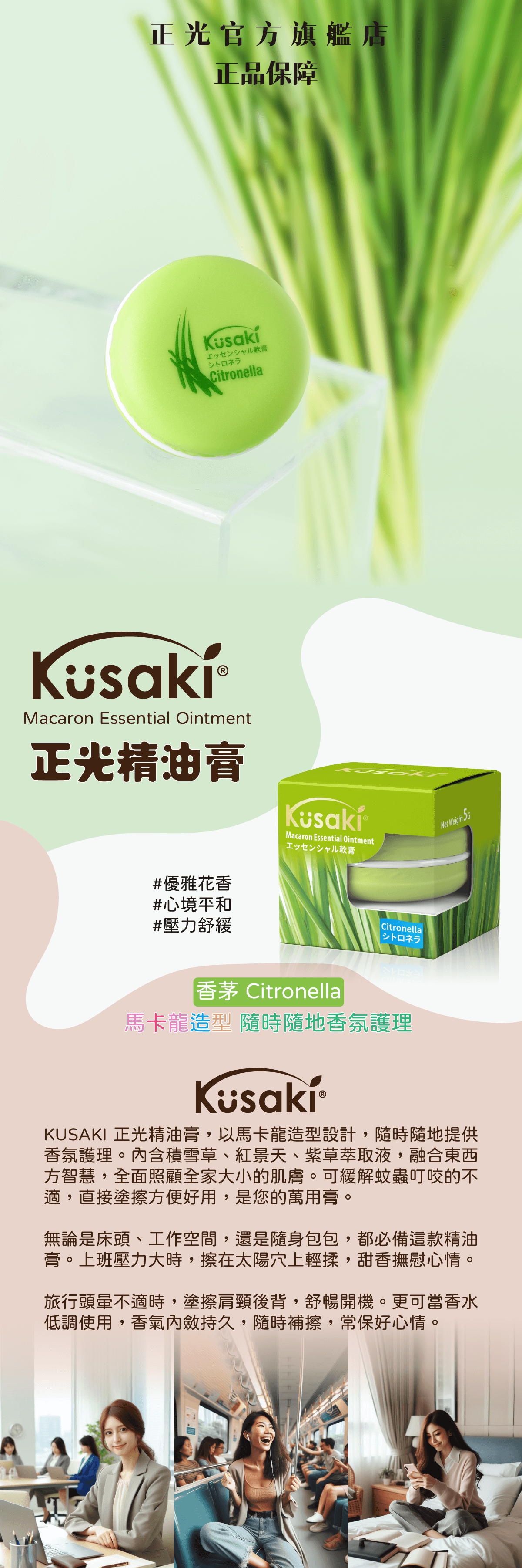 成分:香茅精油、檸檬精油、薄荷精油、積雪草萃取液、紅景天萃取液、紫草萃取液、油膏基劑。