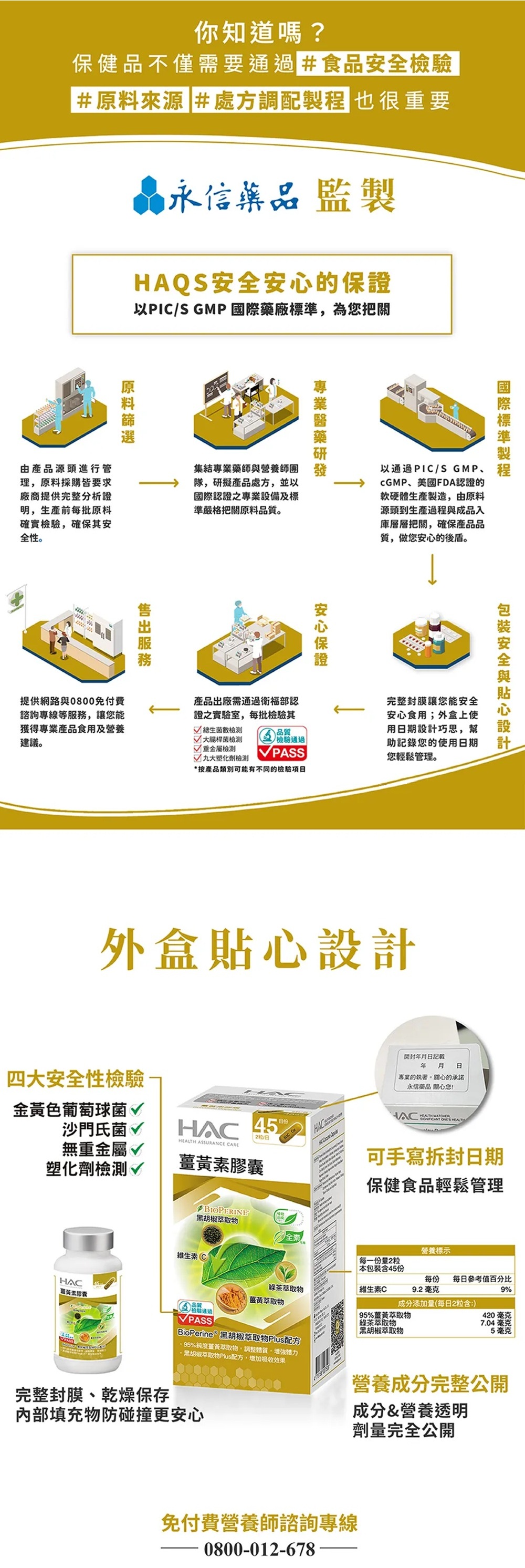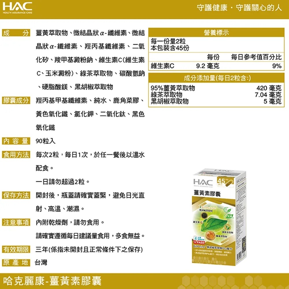 HAC-薑黃素膠囊嚴選95%之薑黃萃取物