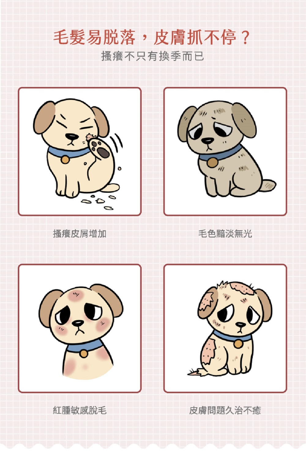 #狗皮膚保健 #狗皮毛保養 #換季皮膚癢 #掉毛 #神經醯胺 #雙乳桿菌 #益生元 #益生質 #益生菌