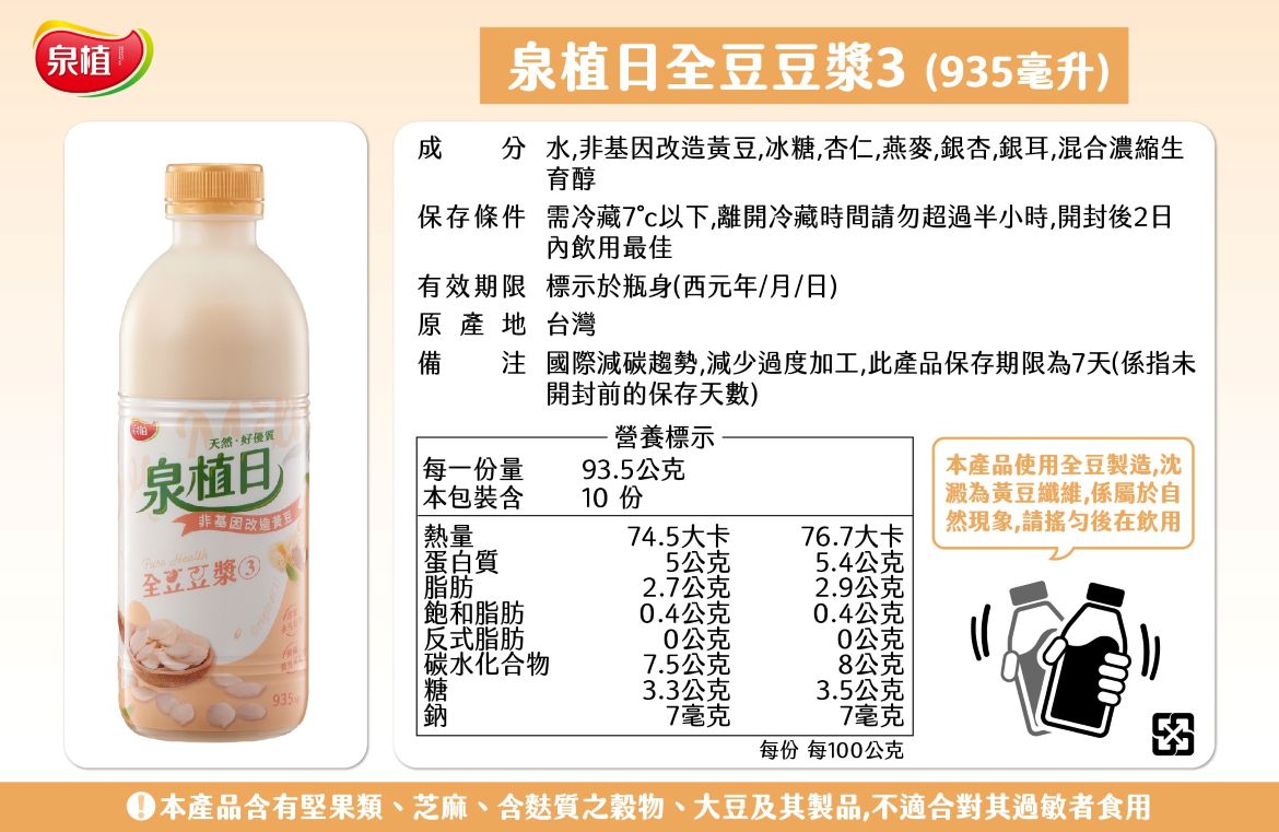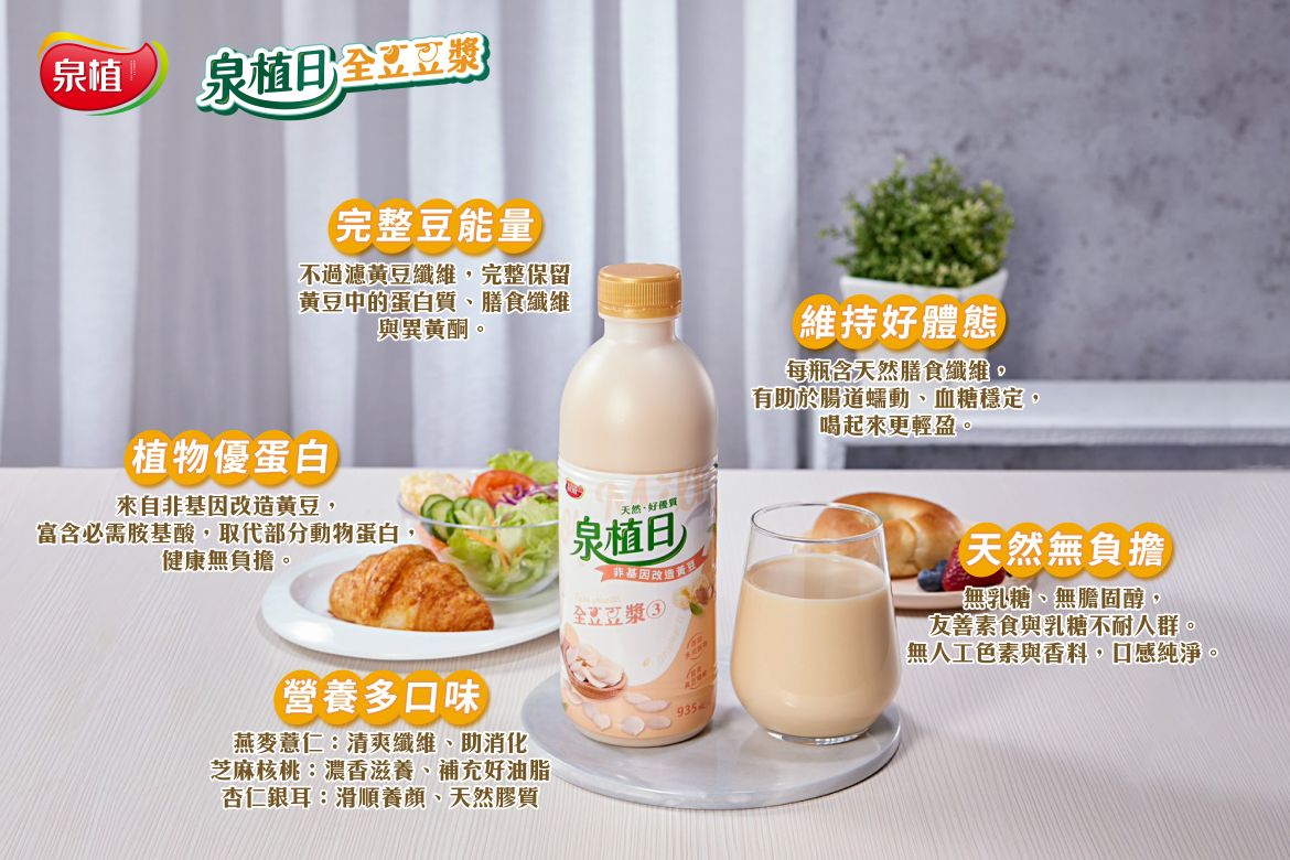 ◆全豆豆漿:是一種將整顆黃豆完整保留營養成分的豆漿製程。