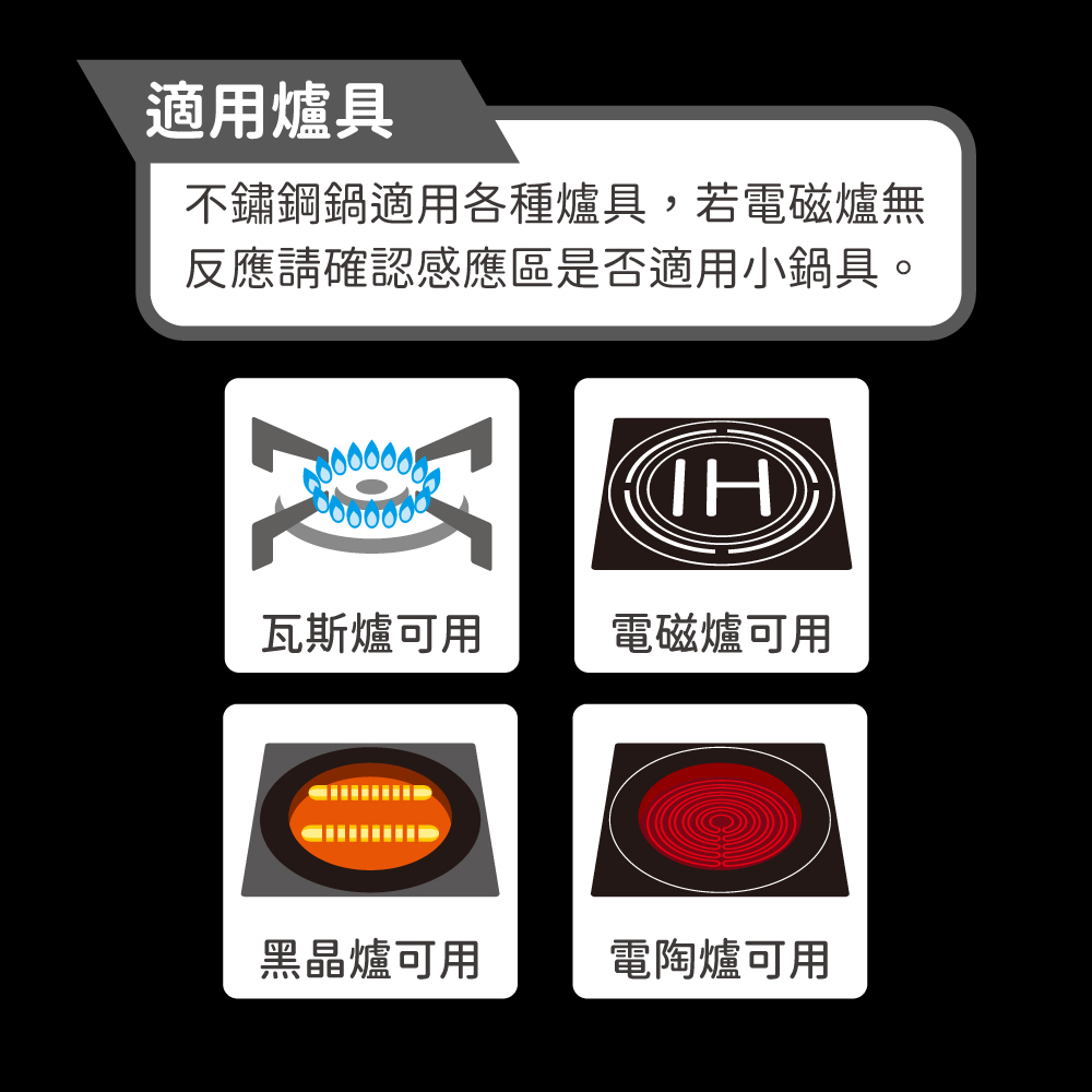 ◆適 用:電磁爐、瓦斯爐、陶瓷爐。