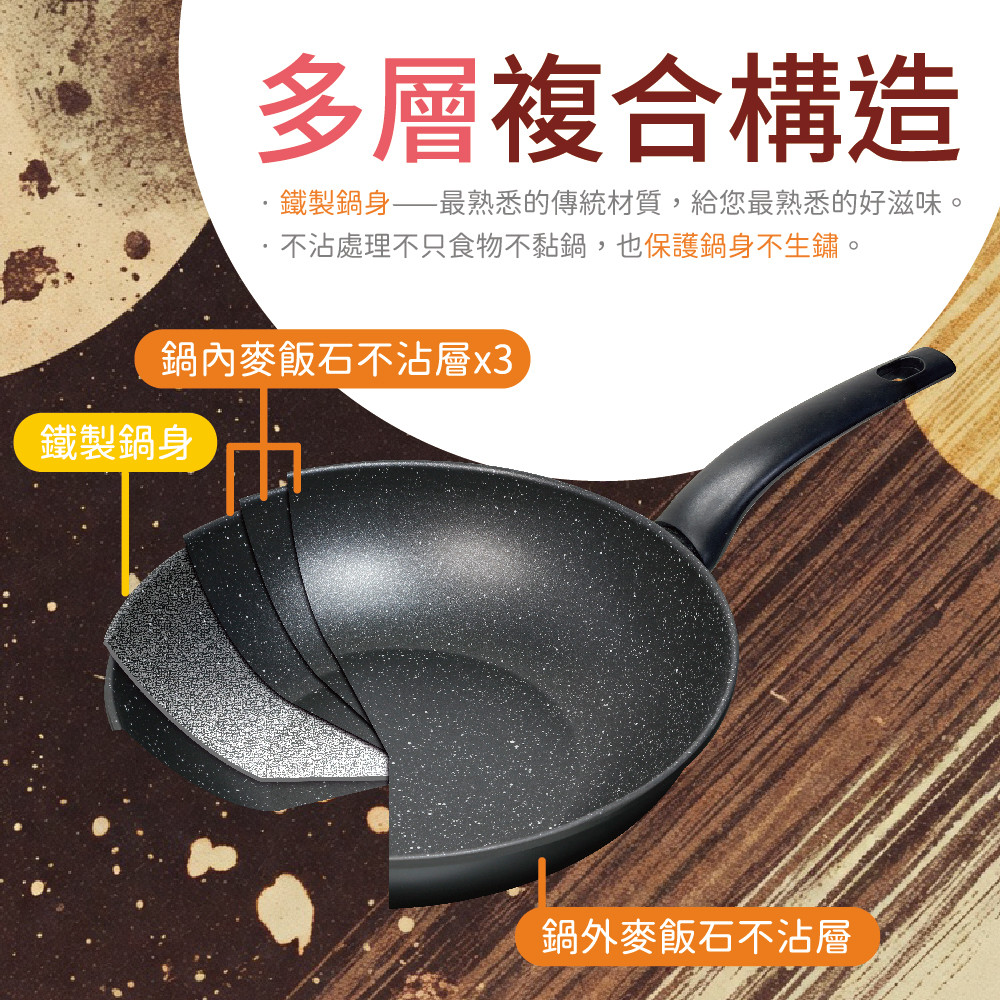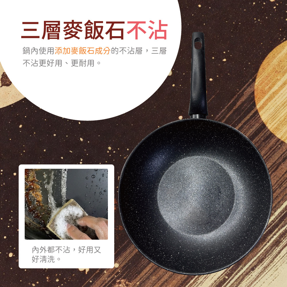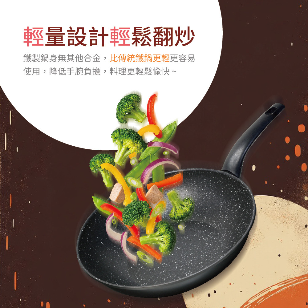 ◆清潔方式:一般清潔方式即可(禁用菜瓜布、鋼刷、鐵鏟)。※輕量鐵製鍋身,三層麥飯石不沾強化不沾耐用度。