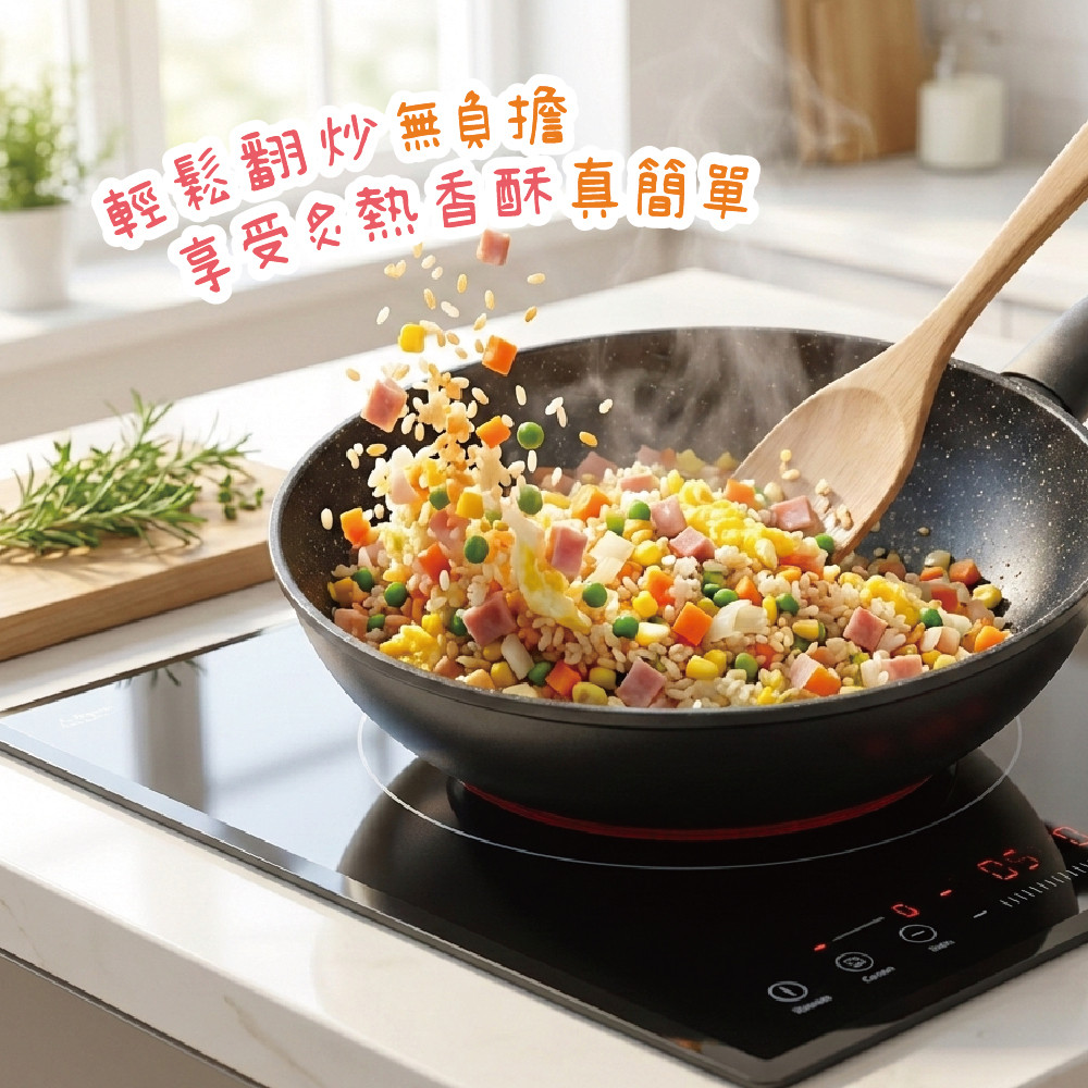 ※免熱鍋熱油,加熱10秒鐘即可下鍋,不沾不黏快速便利。