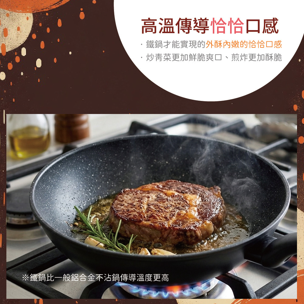 ※鐵製鍋身高溫傳導,煎出一般不沾鍋無法呈現的外酥內嫩口感。