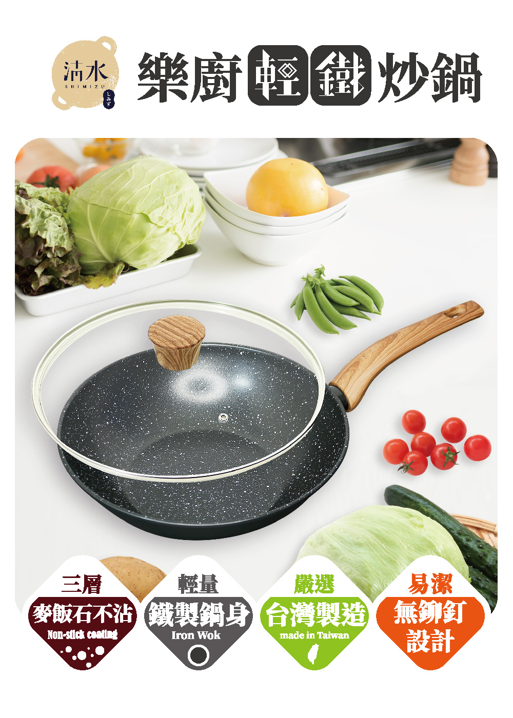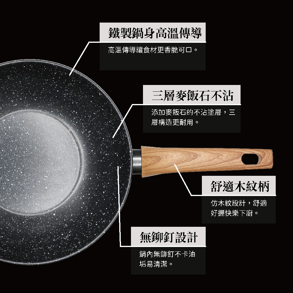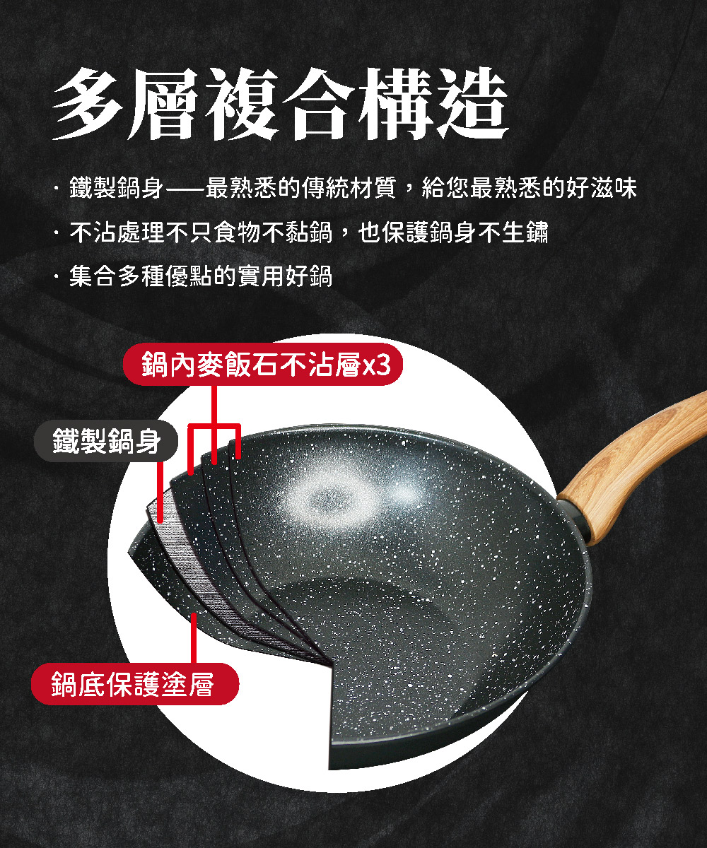 ◆鍋身材質:鐵、三層不沾。