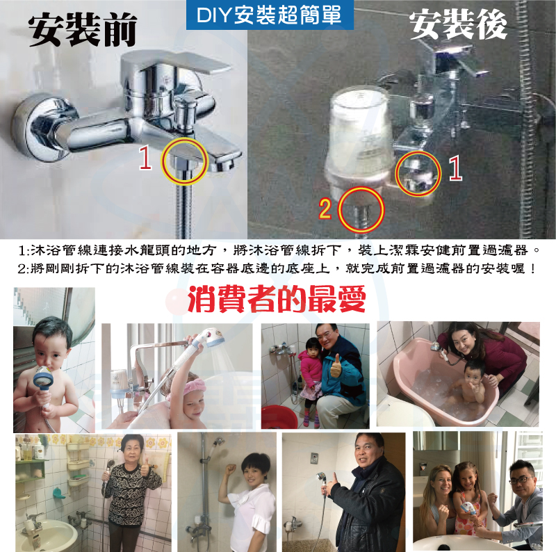 商品規格::嬰幼兒沐浴淨水器x1+多功能前置過濾器x1