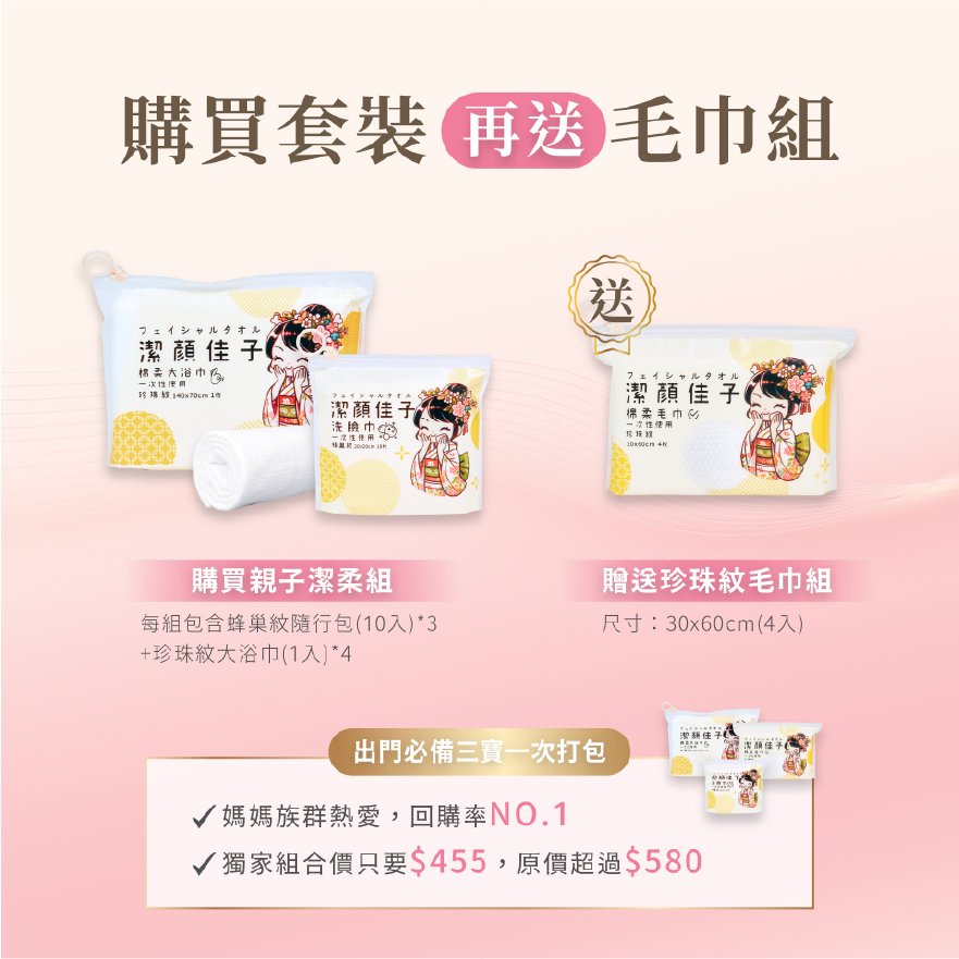洗臉巾+浴巾一次帶回,再送毛巾=立省$55,等同86折!多一份全家人都用得到的便利。