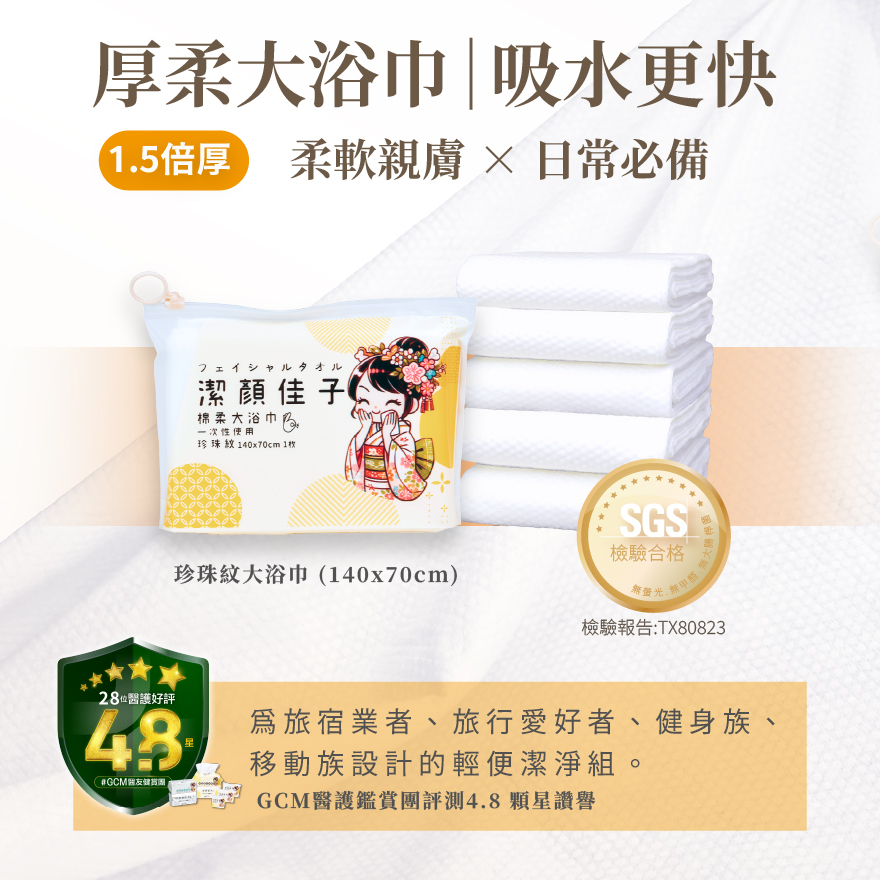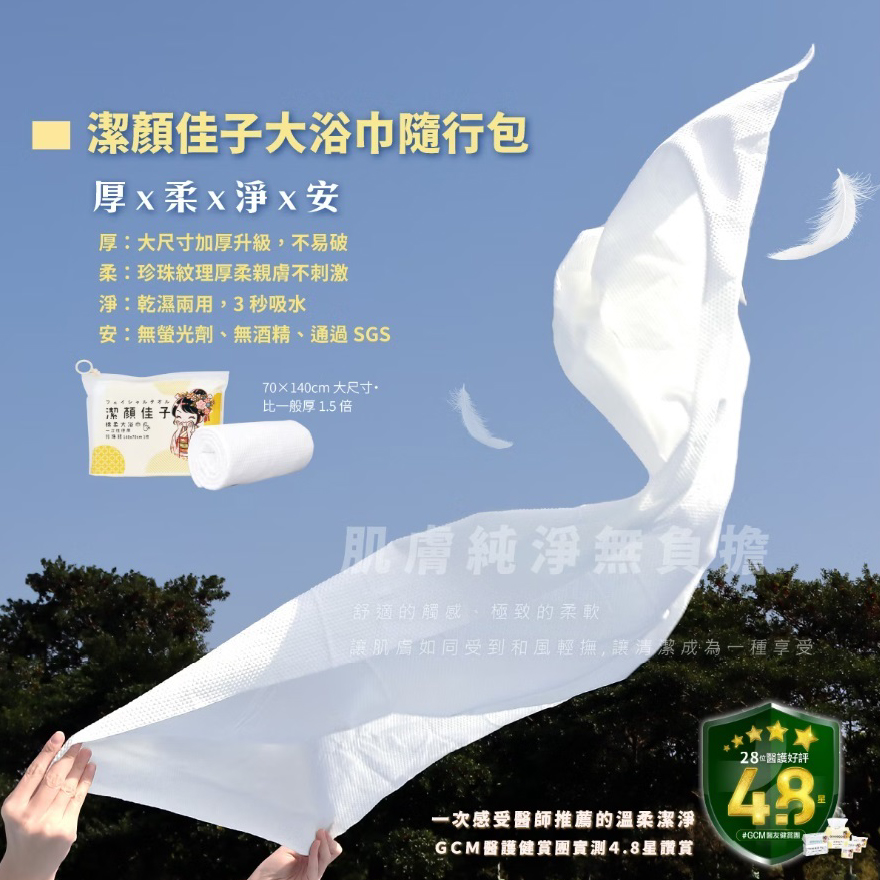全身潔淨 × 外出安心|柔厚珍珠紋設計,一巾搞定旅行沐浴