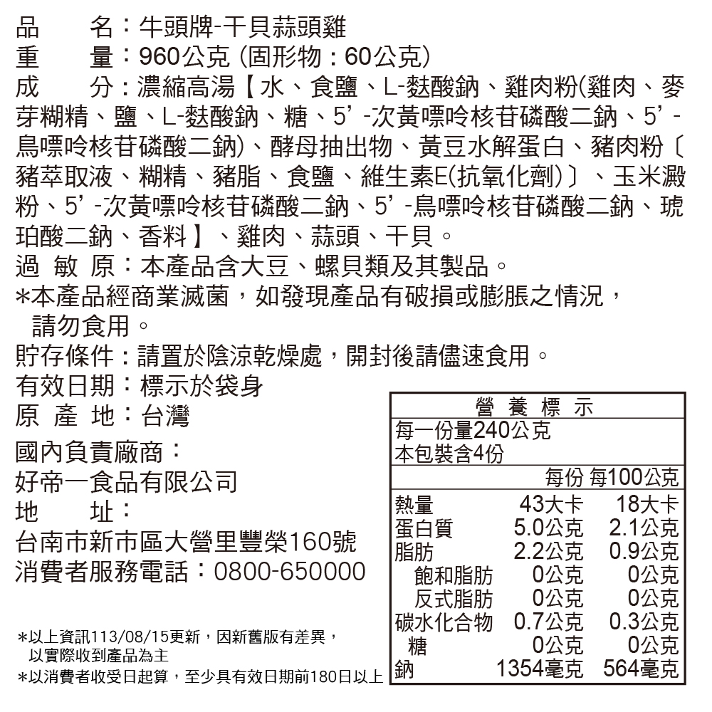 ◎Brand:牛頭牌 ◎Specifications: 960g克 x 1 x 1Bag包