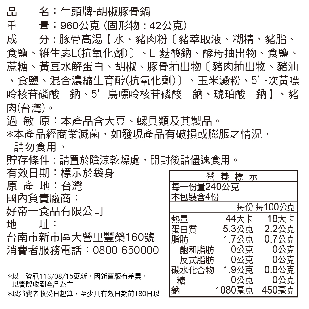 ◎Brand:牛頭牌 ◎Specifications: 960g克 x 1 x 1Bag包