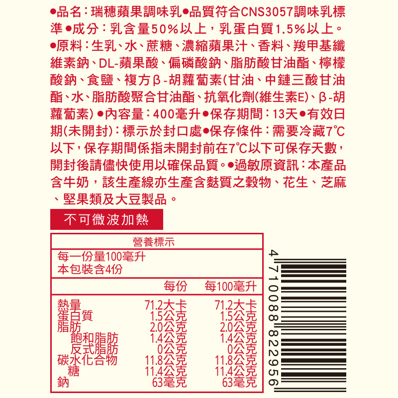 ◎Brand:瑞穗調味乳 ◎Specifications: 400ml毫升 x 1 x 1Bottle瓶