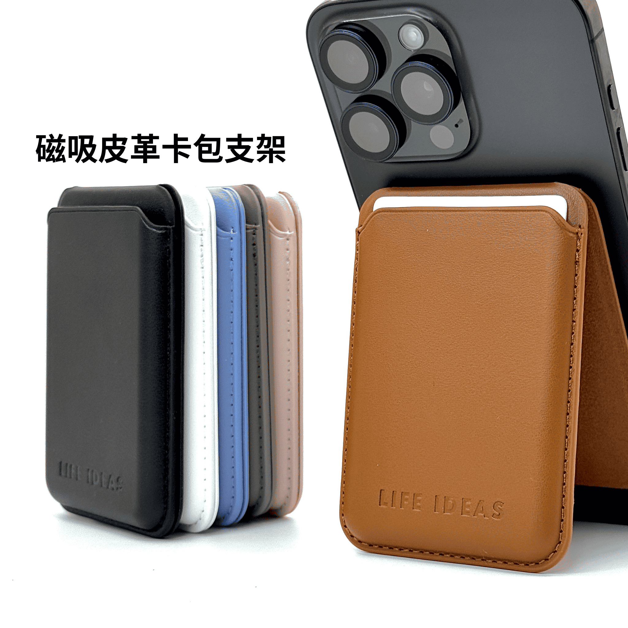 【LIFE-IDEAS】MagSafe Stand & Card Holder: Zero Drop-Off Design, Secure Even for iPhone 17 Pro Max. Pink . Compatible with iPhone and Android.