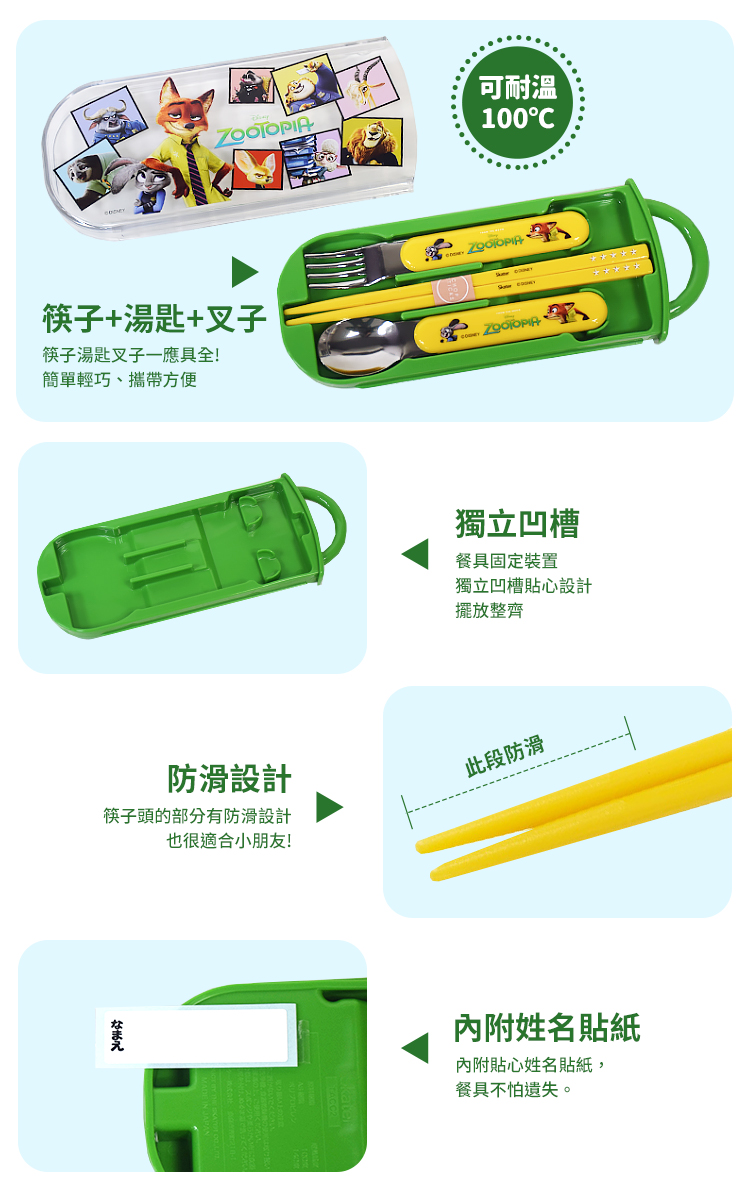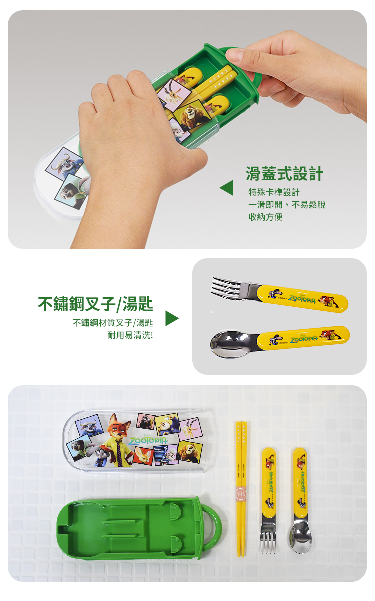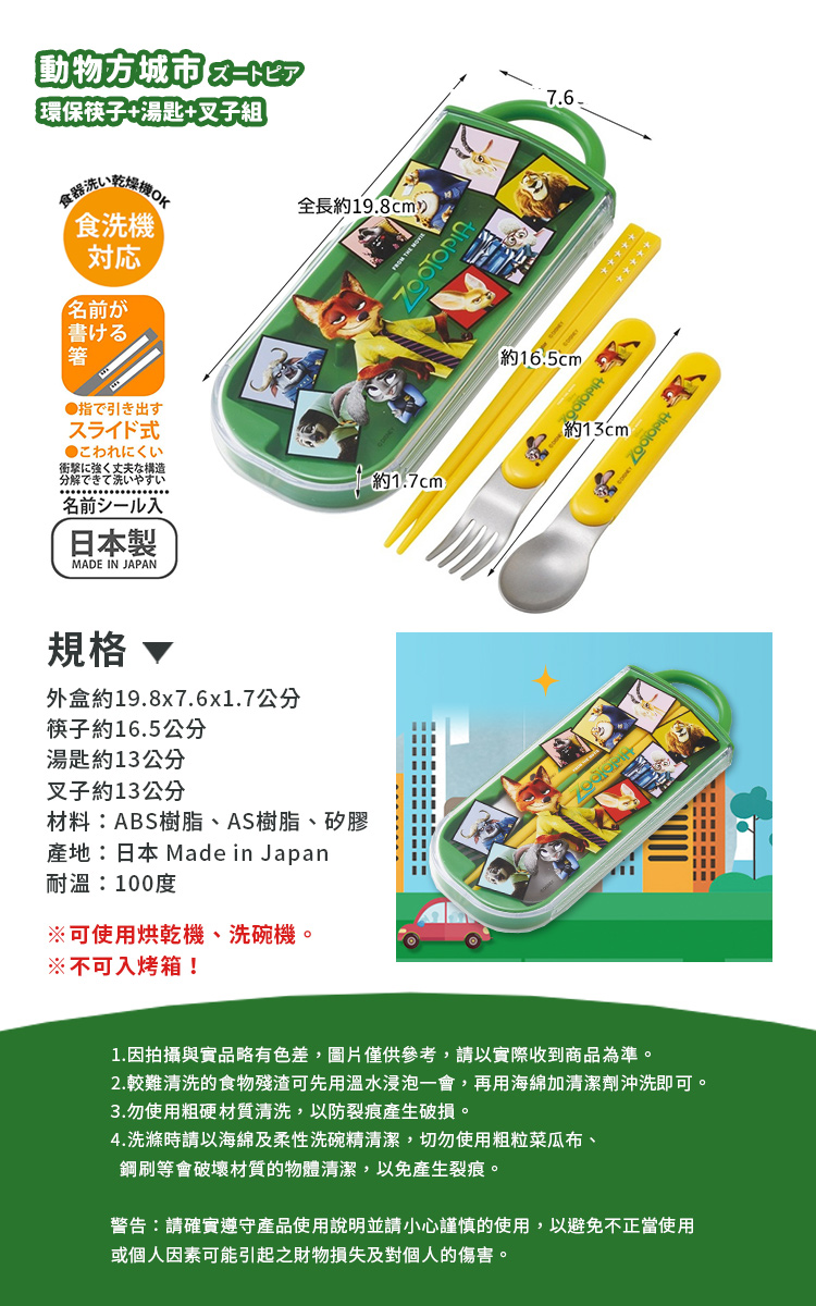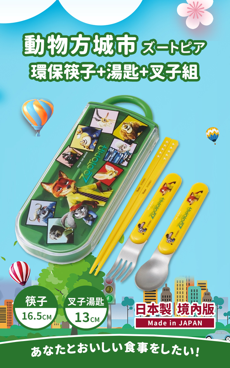 【百科良品】日本製 迪士尼 動物方城市 角色大集合 環保筷子+湯匙+叉子三件餐具組(日本境內版)