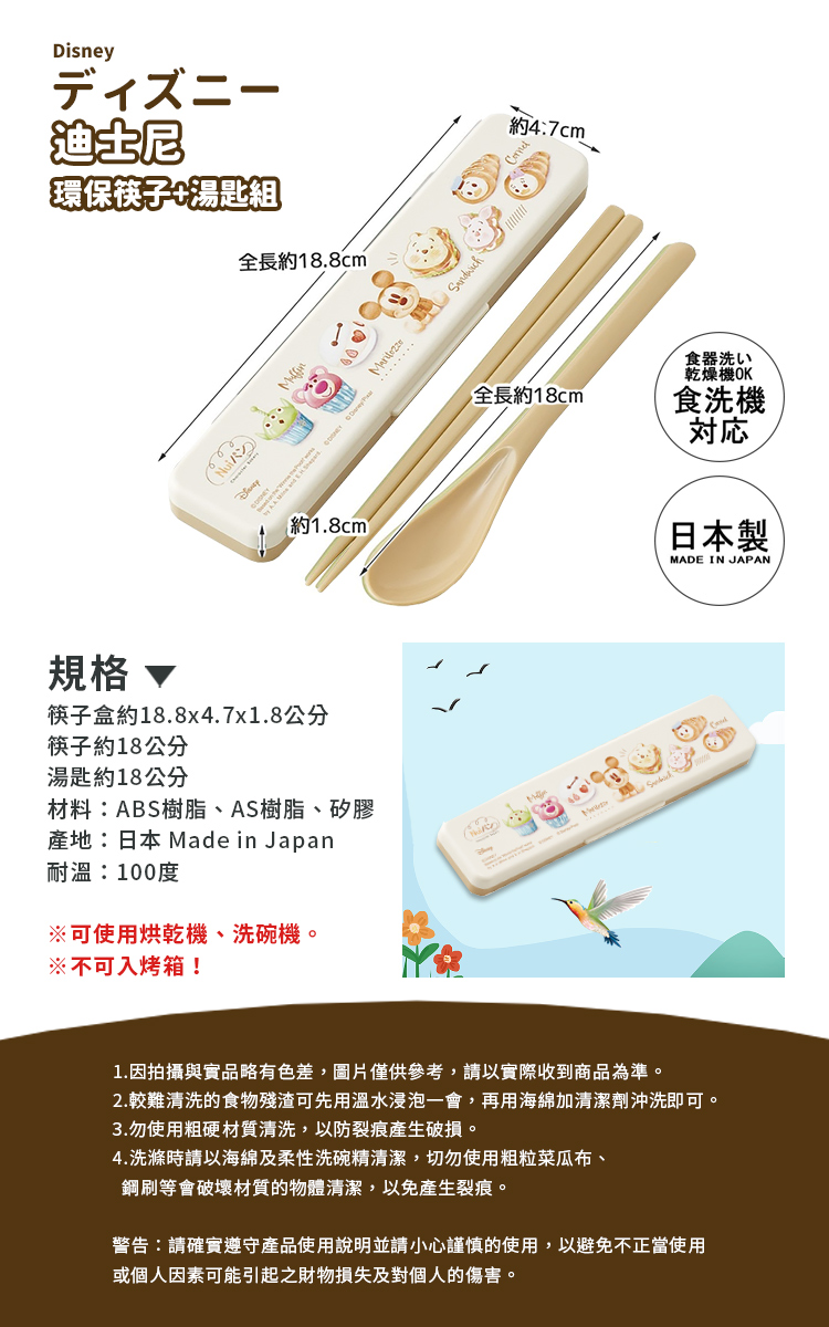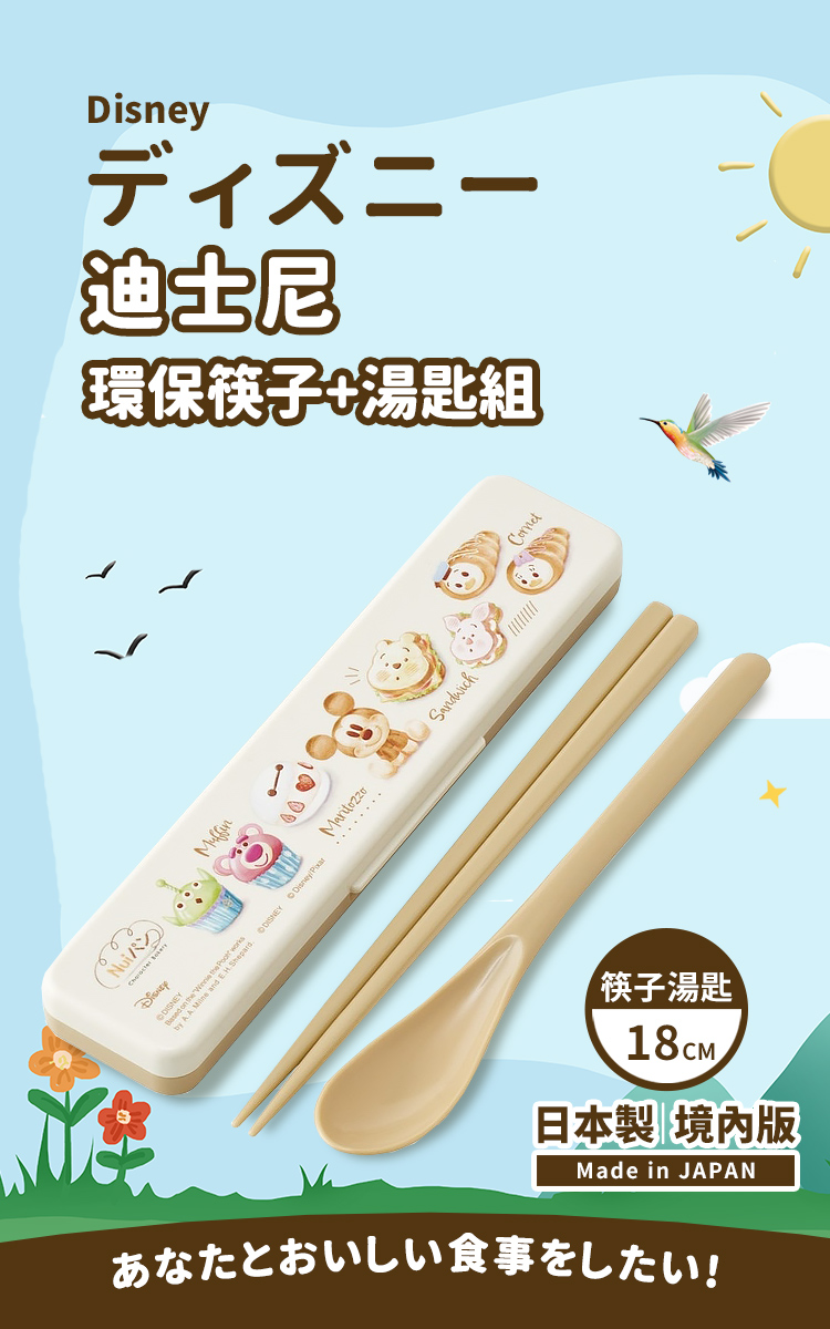 【百科良品】日本製 迪士尼 烘焙大集合 環保筷子+湯匙組 18CM(日本境內版)