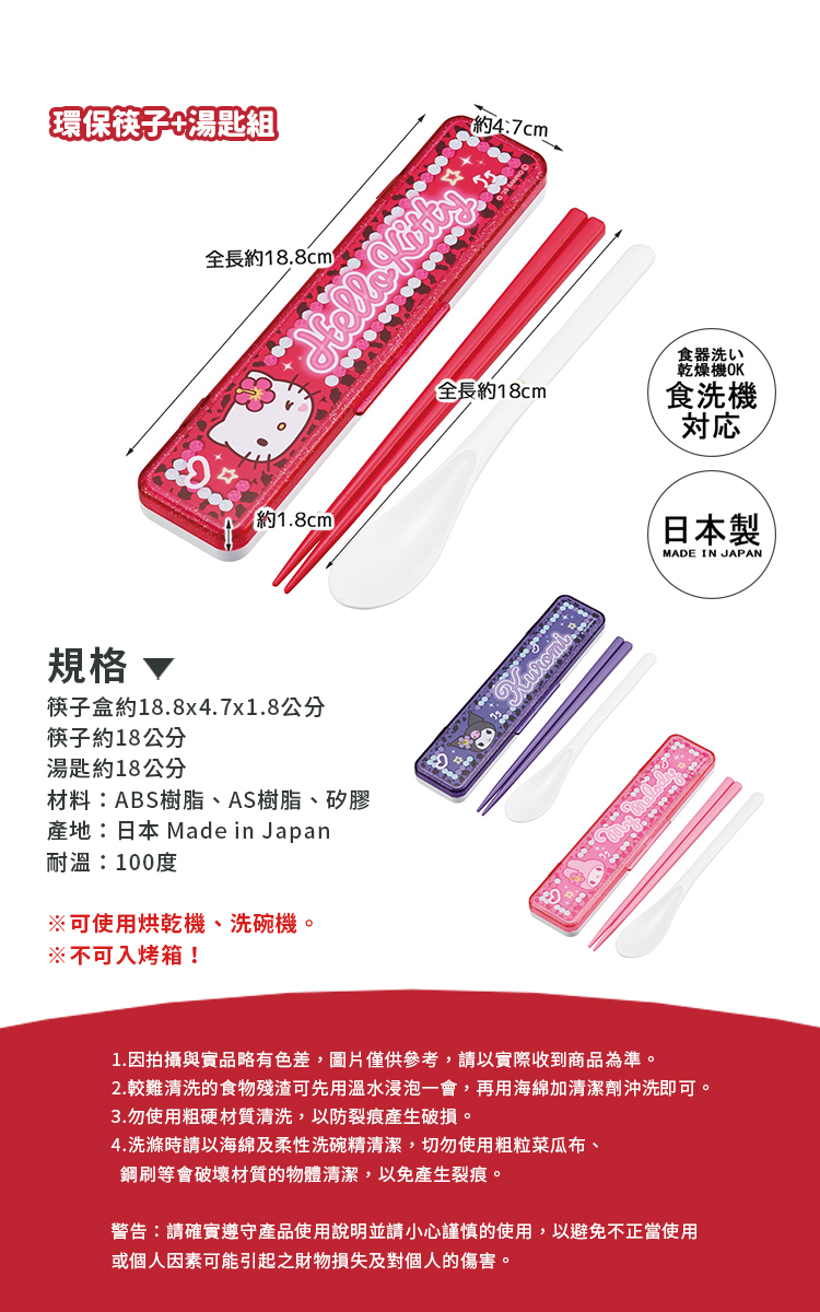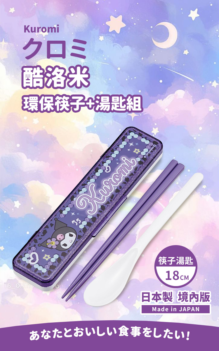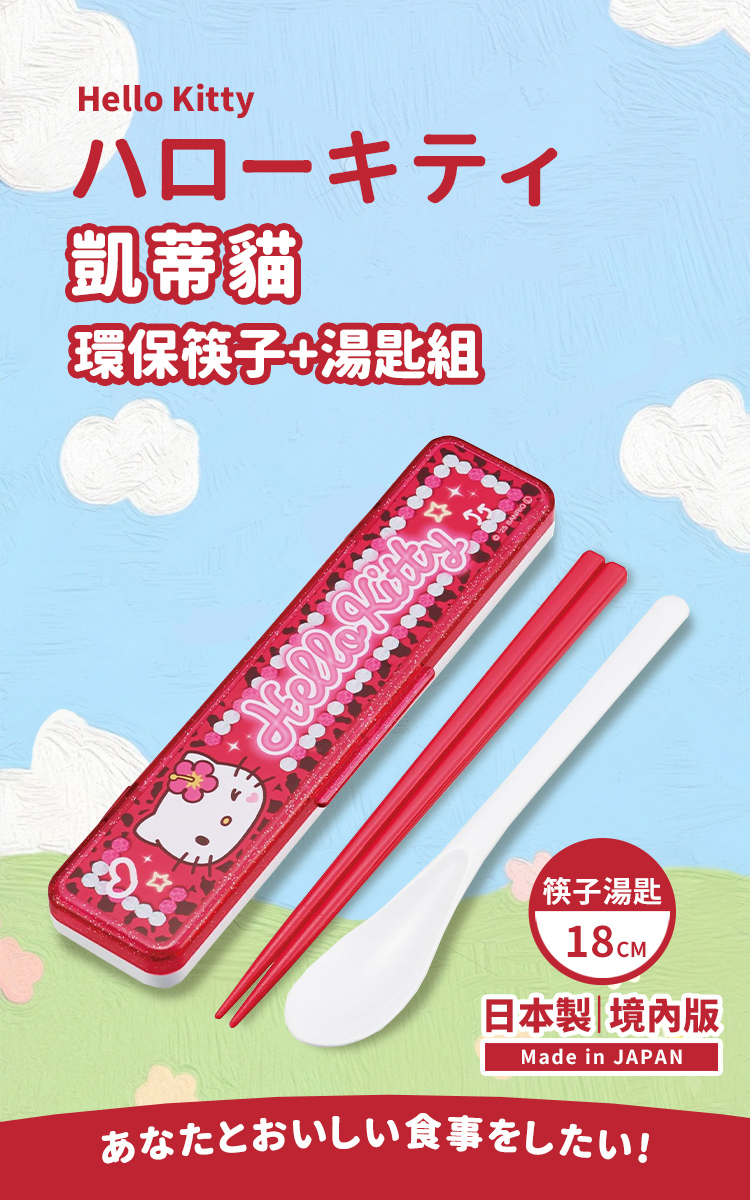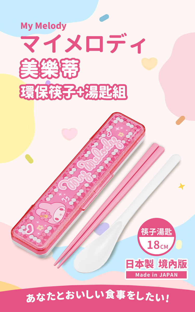 【百科良品】日本製 三麗鷗 凱蒂貓 美樂蒂 酷洛米 閃耀鑽石 環保筷子+湯匙組 18CM(日本境內版)