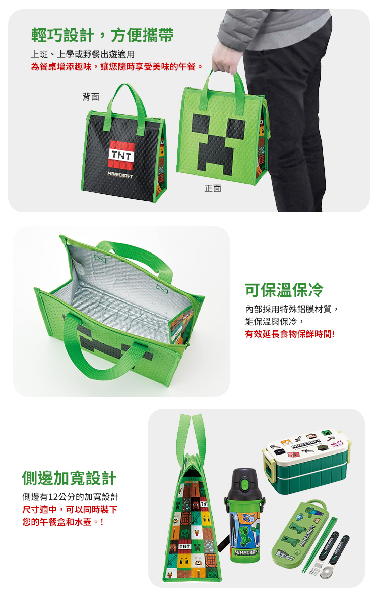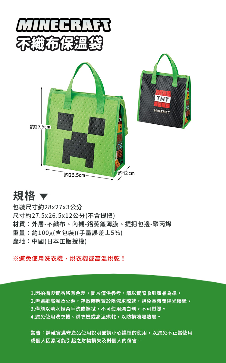 【百科良品】麥塊 苦力怕 不織布保溫袋 午餐袋 便當袋 環保手提袋 (日本境內版)