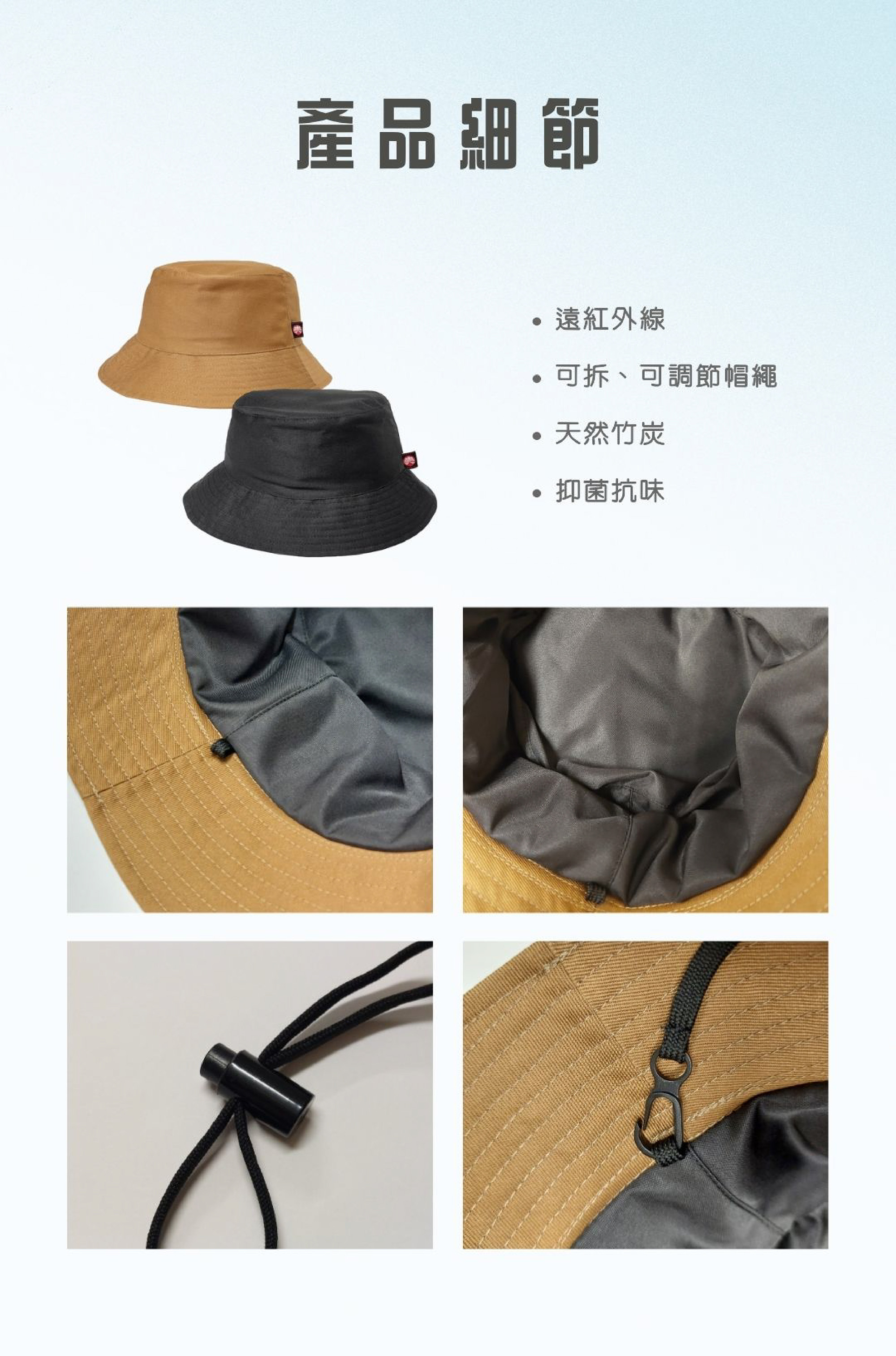 無論是踏青、郊遊還是日常佩戴,『炭趣漁夫帽』都能為您的頭部帶來舒適與保健效果,讓您隨時隨地都能享受健康生活!