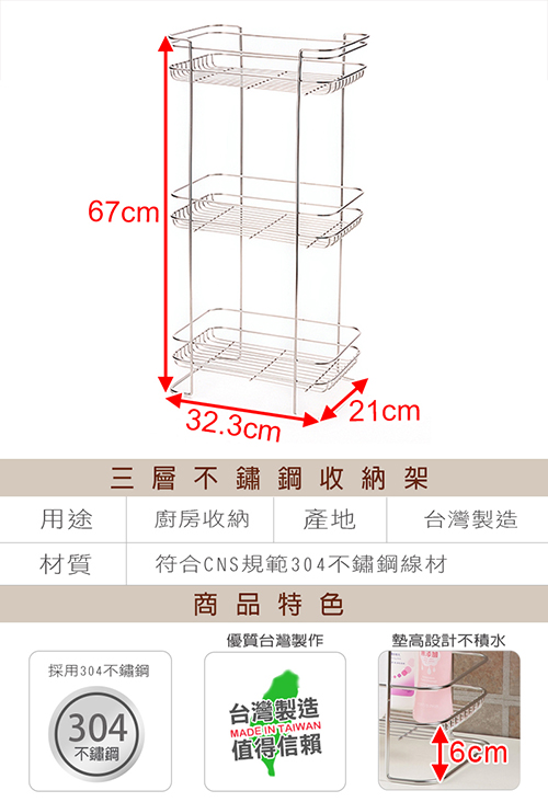◎Brand:真心良品 ◎Specifications: 三層不鏽鋼收納架x1個 ◎逛逛專館: 真心良品
