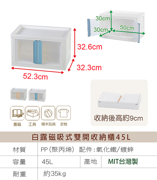 【真心良品】雪山磁吸式雙開收納櫃45L