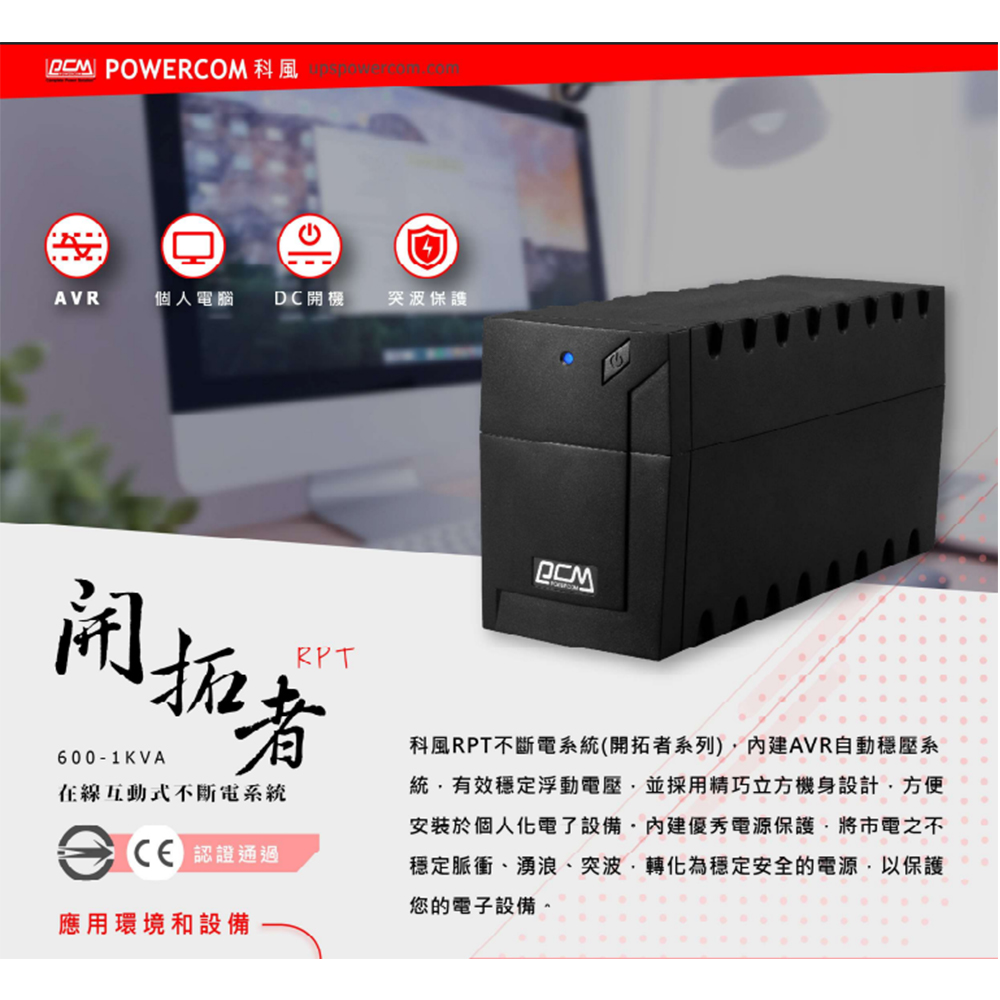 昌運監視器 科風PCM RPT-600A 110V 600VA 直立式 在線互動式UPS 不斷電系統