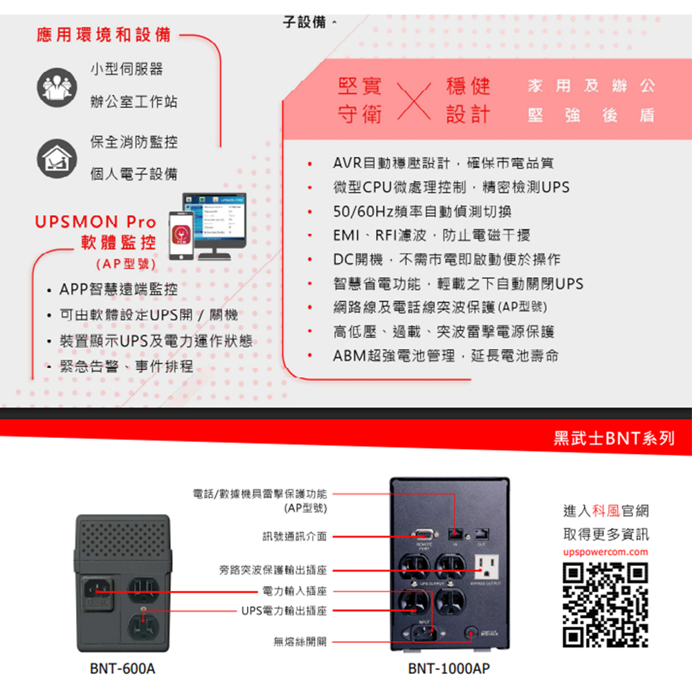 昌運監視器 科風PCM BNT-600A 110V 600VA 直立式 在線互動式UPS 不斷電系統(RS-232介面)