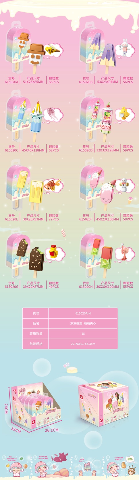 [Brick Republic]Senbao SB615020A–H Ice Pop Sweetheart – Set of 8 (Educational Building Blocks)