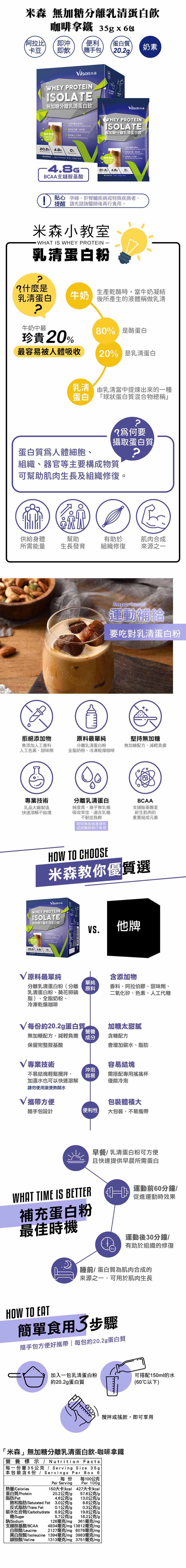 【米森 vilson】Whey Protein Isolate-Coffee Latte (No Sugar Added) (35g x6 Sachets)