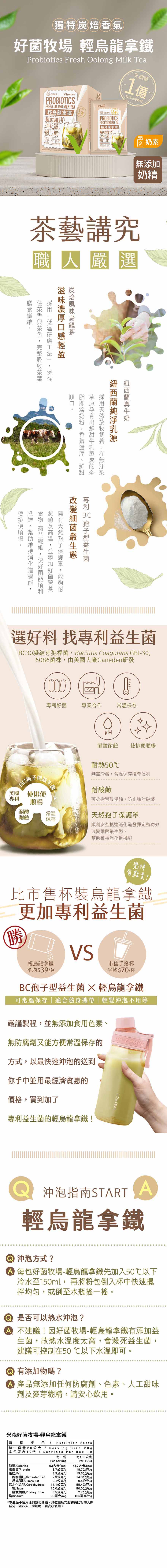 全脂奶粉、砂糖、輕烏龍茶粉、強化型菊苣纖維、BC30凝結芽孢桿菌(菊糖、凝結芽孢桿菌(乳酸菌))