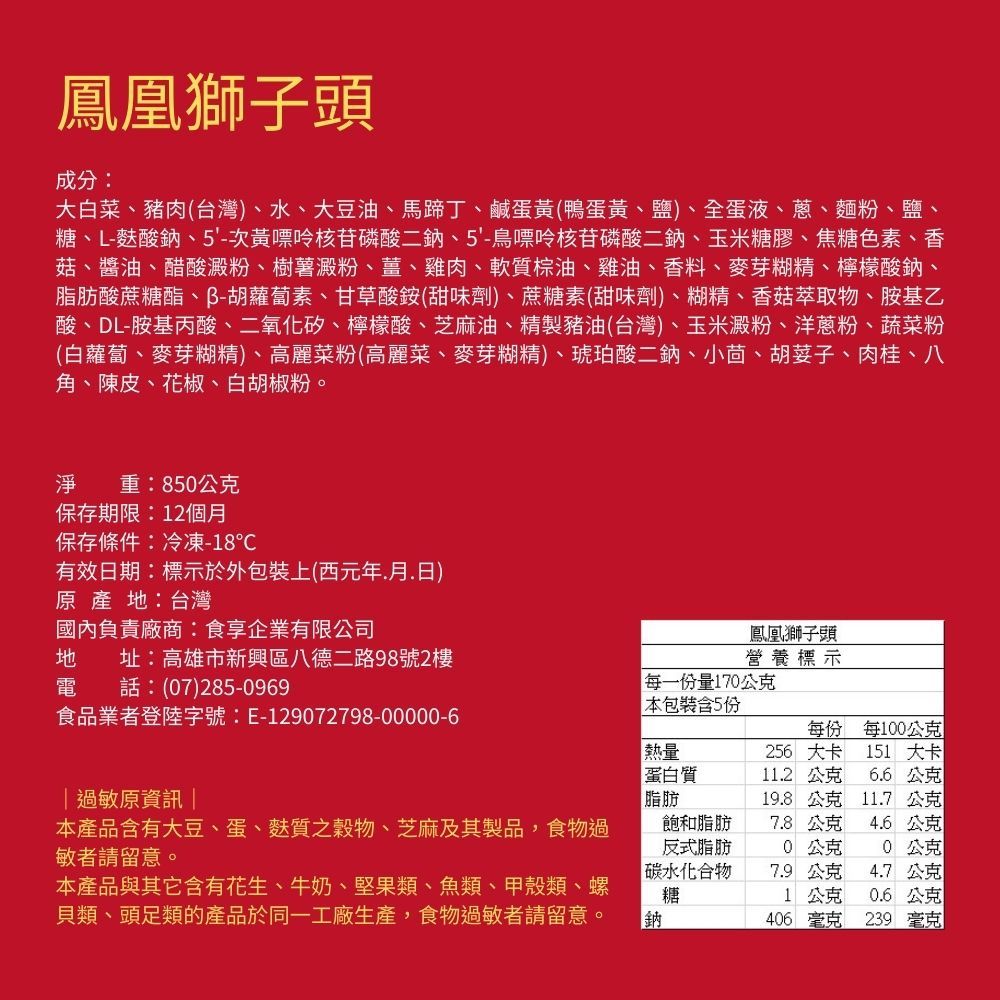 ■商品品名: 紅豆食府-鳳凰獅子頭