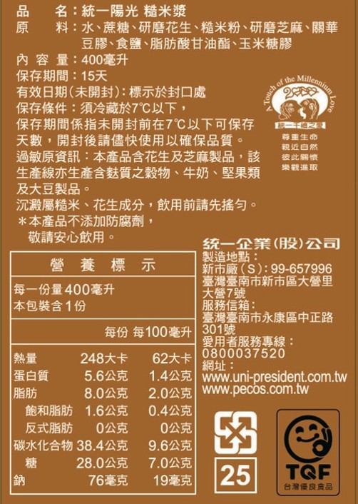 ◎Brand:統一陽光 ◎Specifications: 400ml毫升 x 1 x 1Bottle瓶