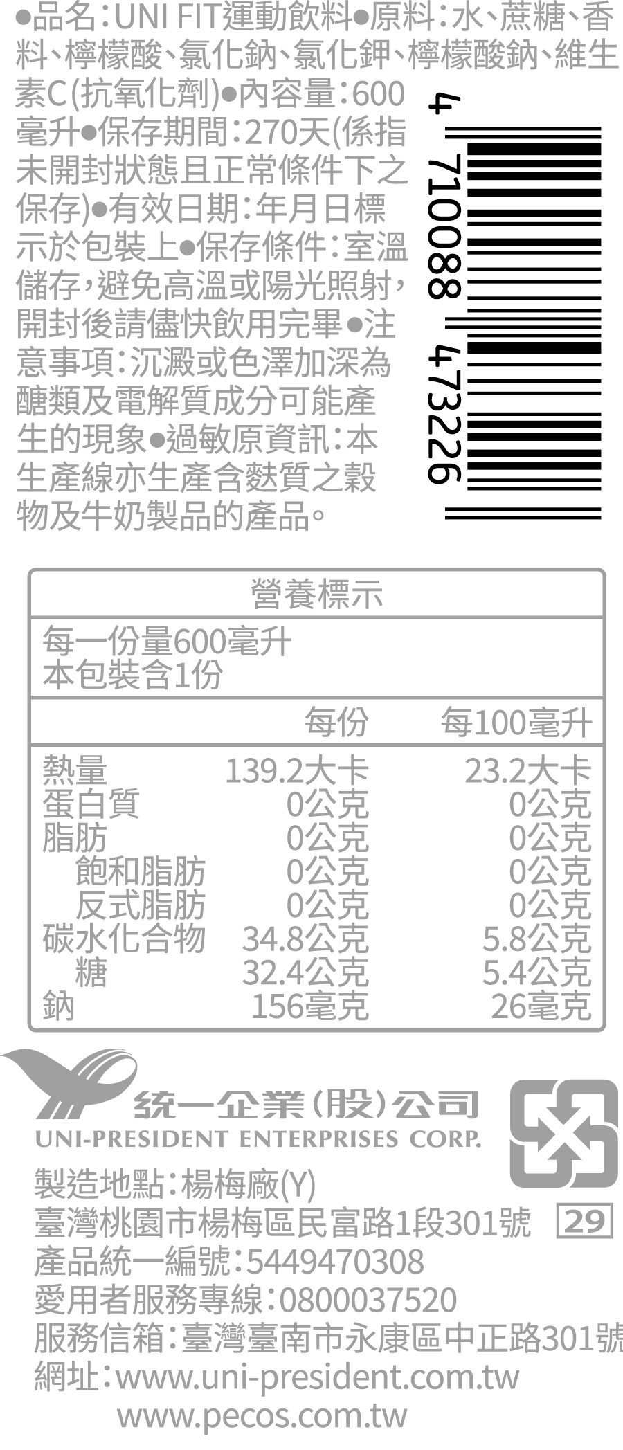 ◎Brand:統一 ◎Specifications: 600ml毫升 x 1 x 1BOTTLE瓶