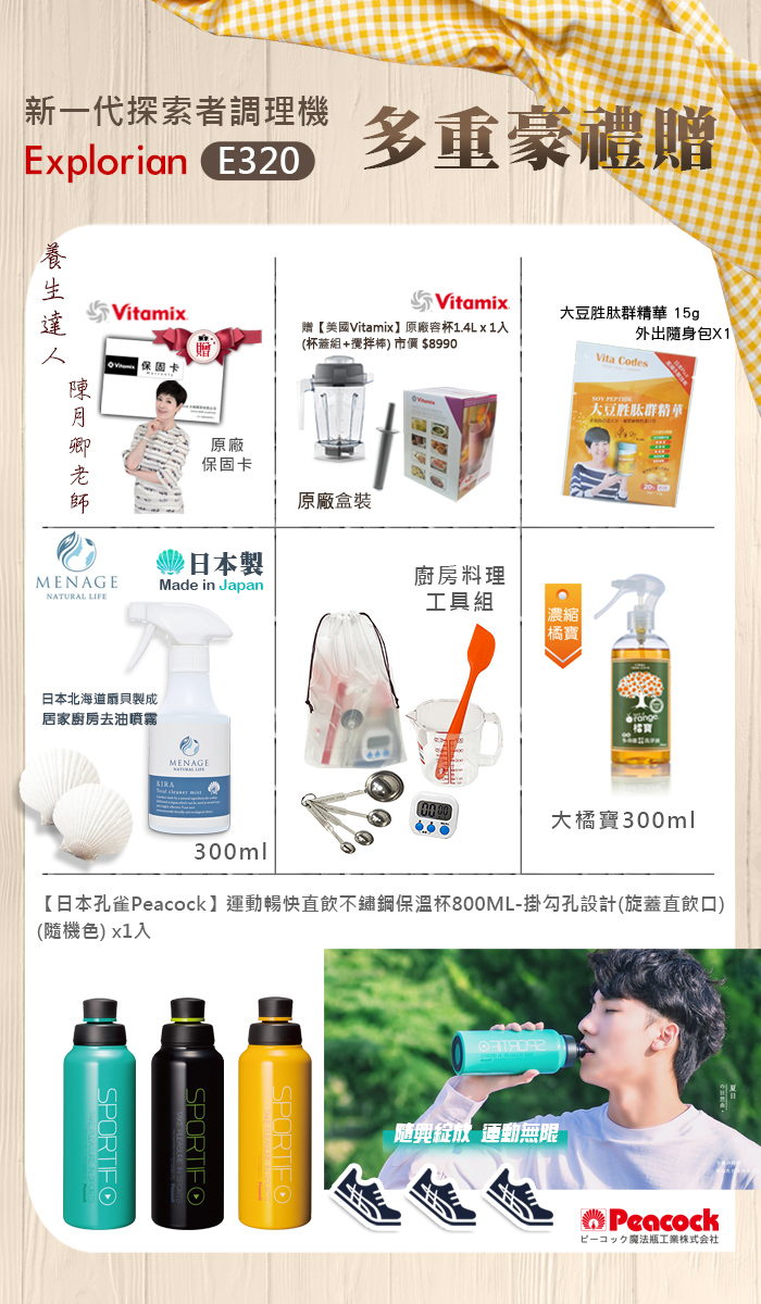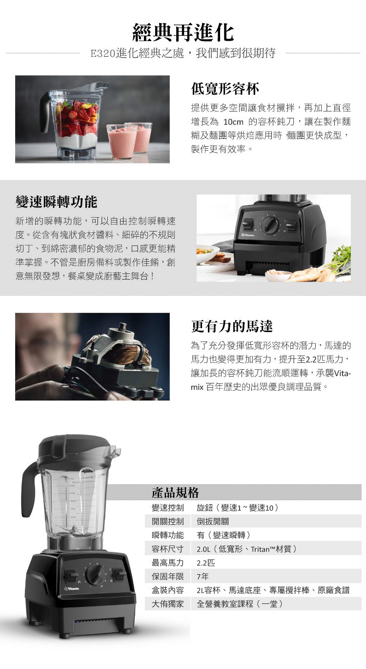 【美國原裝Vita-Mix】E320 Explorian探索者調理機2.0+1.4L雙杯組 果汁機 養生綠拿鐵(官方公司貨)