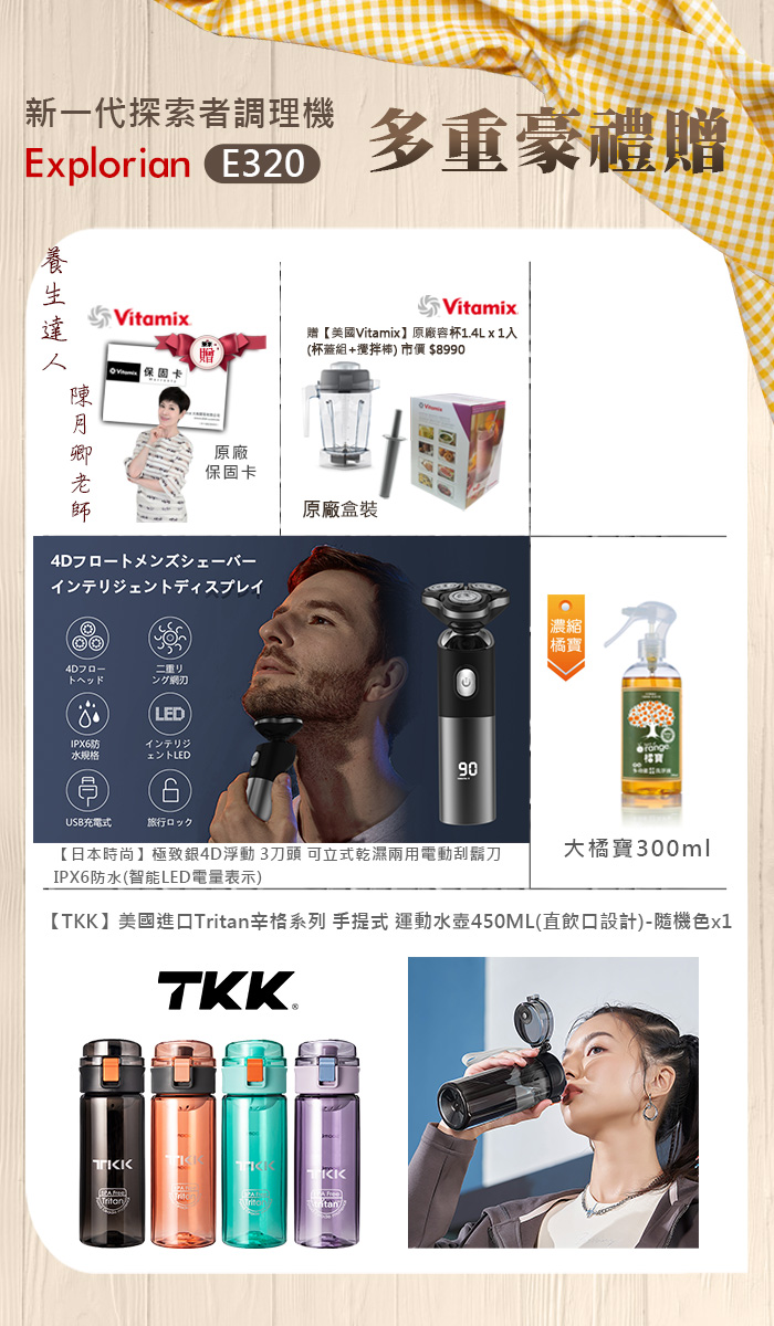 【美國原裝Vita-Mix】E320 Explorian探索者調理機2.0+1.4L雙杯組 果汁機 養生綠拿鐵(官方公司貨)