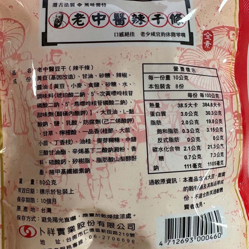 中秋烤肉聚餐夯品茶食零食 老中醫豆干80g (小豆丁(純素)/蒜茸塊(五辛素)/辣干條(純素)) 口味任選 [20包免運組]
