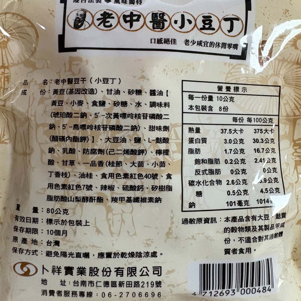 中秋烤肉聚餐夯品茶食 老中醫豆干80g (小豆丁/蒜茸塊/辣干條) 口味任選 [8包免運組]