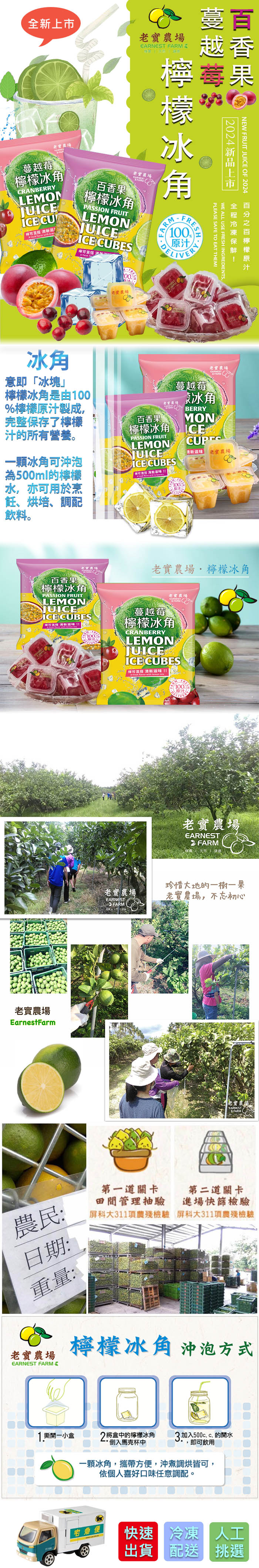 品名:檸檬百香冰角 成份:檸檬原汁、百香果原汁 品名:檸檬蔓越莓冰角 成份:檸檬原汁、蔓越莓原汁 重量:28公克(28毫升)±9%/個*10個/袋 保存期限:兩年(冷凍-18℃) 效期365天以上-以消費者收受日起算,至少距有效日期前90日以上 有效日期:標示於包裝上 產地:台灣 製造廠商:永大食品生技股份有限公司 地址:屏東縣內埔鄉竹圍村永豐巷19號 客服專線:0800-006234 富邦產物產品責任險:0512字第19AML0000262號 食品業者登錄字號:F-184822655-00000-3