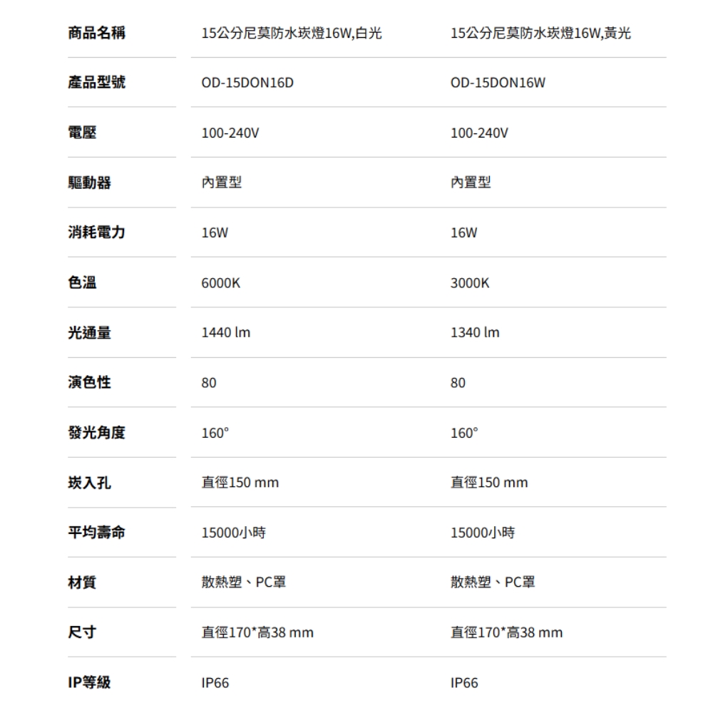 色溫:黃光3000K / 白光6500K