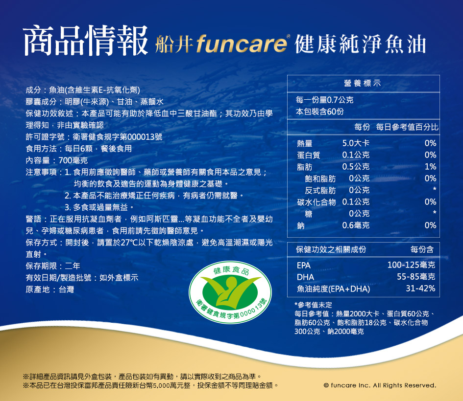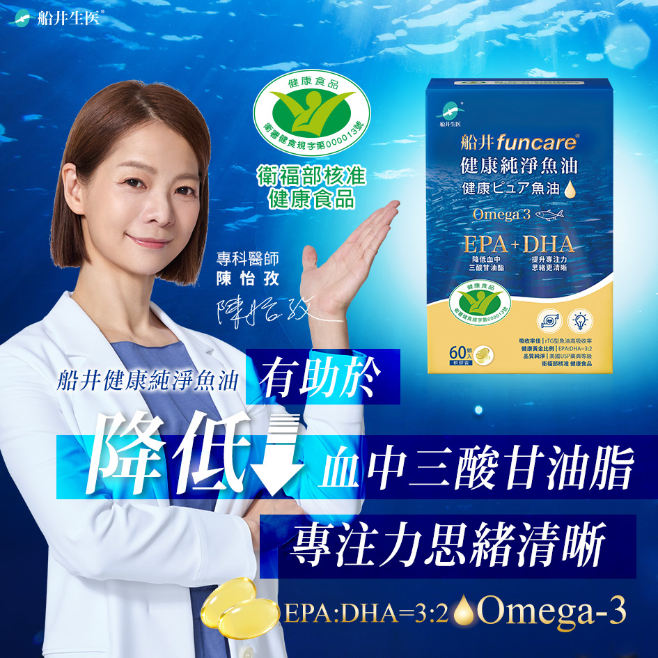 ★衛福部核准 健康食品 ★有助於降低血中三酸甘油脂 ★3:2 EPA+DHA黃金比例 ★調節身體代謝、維持循環健康 ★48道嚴格品質檢測,無重金屬、農藥..等環境有害物質汙染