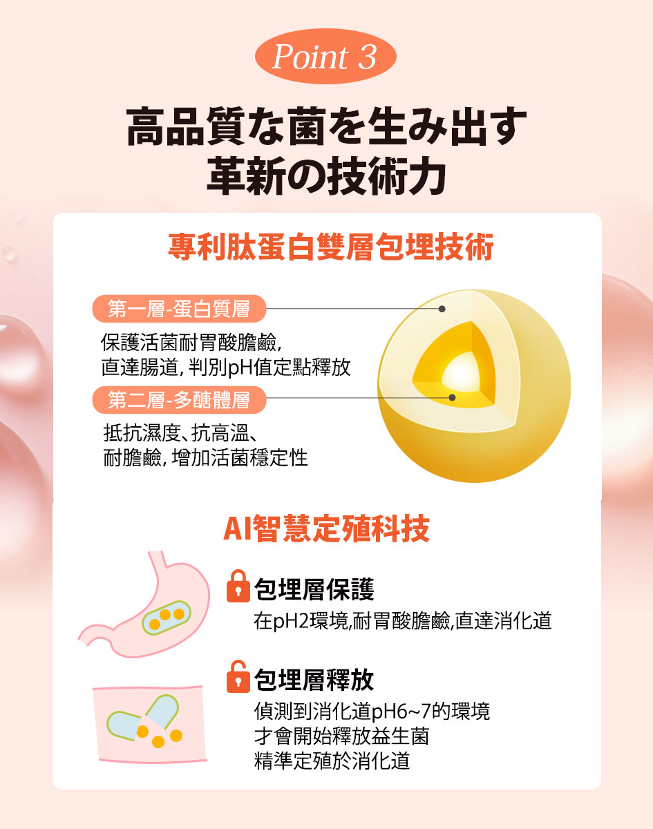 玉米來源可溶性纖維、麥芽糊精、植物乳桿菌Lactobacillus plantarum N13、半乳寡糖、熱去活型瑞士乳酸桿菌Lactobacillus helveticus MCC1848、乳酸菌粉(酪蛋白乳酸桿菌Lactobacillus casei LC5、比菲德氏雷特氏菌 Bifido-bacterium lactis BL3、植物乳桿菌Lac-tobacillus plantarum LP3、鼠李糖乳桿Lactobacillus rhamnosus LR5、海藻糖、玉米澱粉)、熱去活型植物乳桿菌Lacto