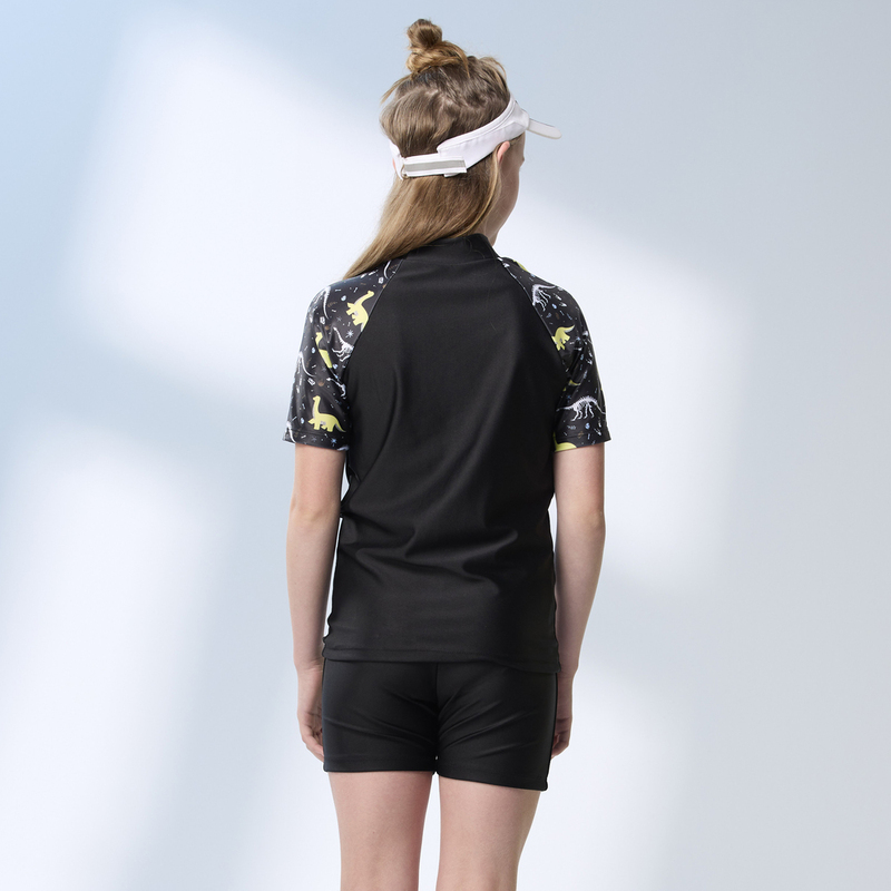 Made in Taiwan. Short-sleeved Jurassic-style two-piece swimsuit for older children, suitable for both boys and girls.