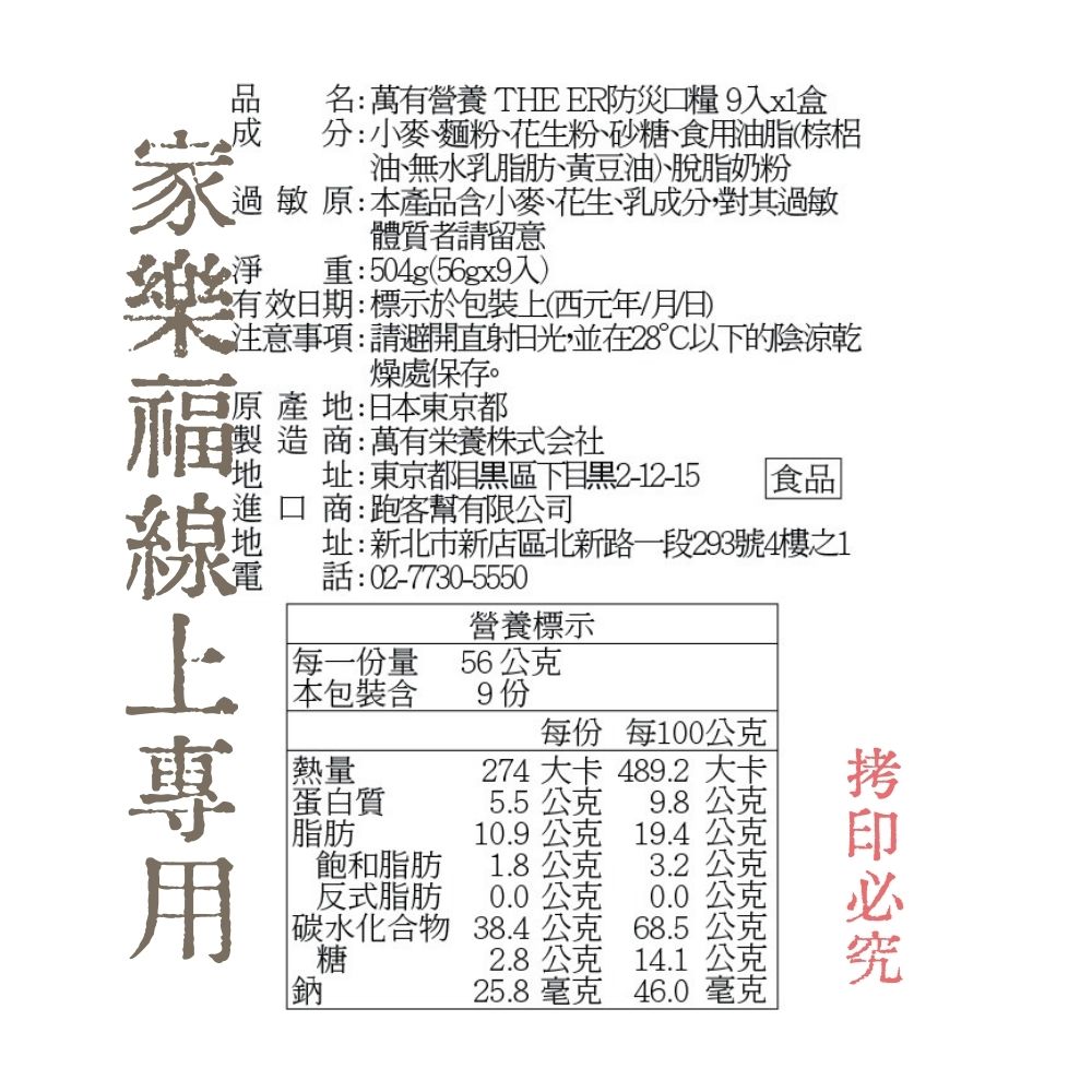 【萬有栄養(Manyo Nutrition)】THE ER Long Shelf-Life Emergency Rations (9 pcs/Box)