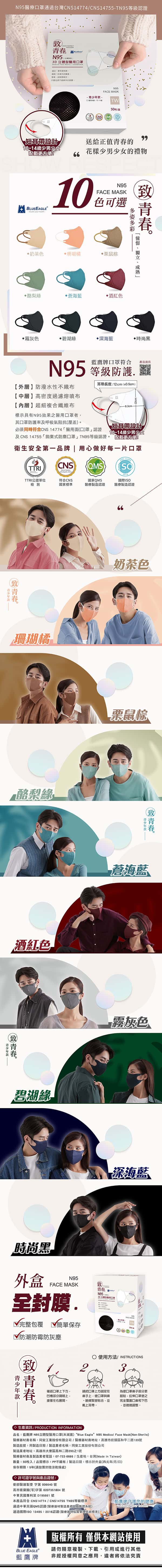 【商品規格】商品名稱:立體型成人醫用口罩-青少年款商品廠牌:藍鷹牌(Blue Eagle)商品型號:NP-3DTMW-50商品顏色:深海藍/時尚黑/酪梨綠/栗鼠棕/霧灰色/酒紅色/蒼海藍/碧湖綠/奶茶色/珊瑚橘商品產地:台灣(Made in Taiwan)主要材料:PP不織布販售數量:50片/盒保存期限:5年(請放至陰涼乾燥處)製造日期:請詳見產品包裝標示(製造日期會因庫存批次【醫療器材許可證】◆核定品名:藍鷹牌N95立體型醫用口罩(未滅菌)◆核准字號:衛部醫器製壹字第 006640 號◆藥商名稱:同安工業股份有限公司◆製造廠名稱:同安工業股份有限公司◆製造廠地址:高雄市大寮區鳳林二路293之1號◆製造廠電話:07-722-6666【藥商許可執照】◆許可執照字號:高市衛藥販(苓)字第 6207351804 號◆藥商名稱:醫碩科技股份有限公司◆藥商地址:高雄市苓雅區和平二路474號◆藥商電話:07-722-5500【產品證號】◆中華民國專利第 D195661 號◆本產品符合 CNS 14774 / CNS 14755 D2等級標準◆通過中華民國QMS認證(醫療器材製造業者品質管理系統)◆通過國際ISO 13485:2016認證(醫療器材品質管理系統標準)【注意事項】1.商品展示圖因每台電腦螢幕設定差異顏色會略有不同,以實際商品顏色為準2.保存及配戴本產品,請遠離火源3.請勿洗滌本產品4.本品受潮或受污染時,請立即停止使用5.當配戴不舒服或呼吸困難時,請立即停止使用6.建議連續配戴時間不超過8小時