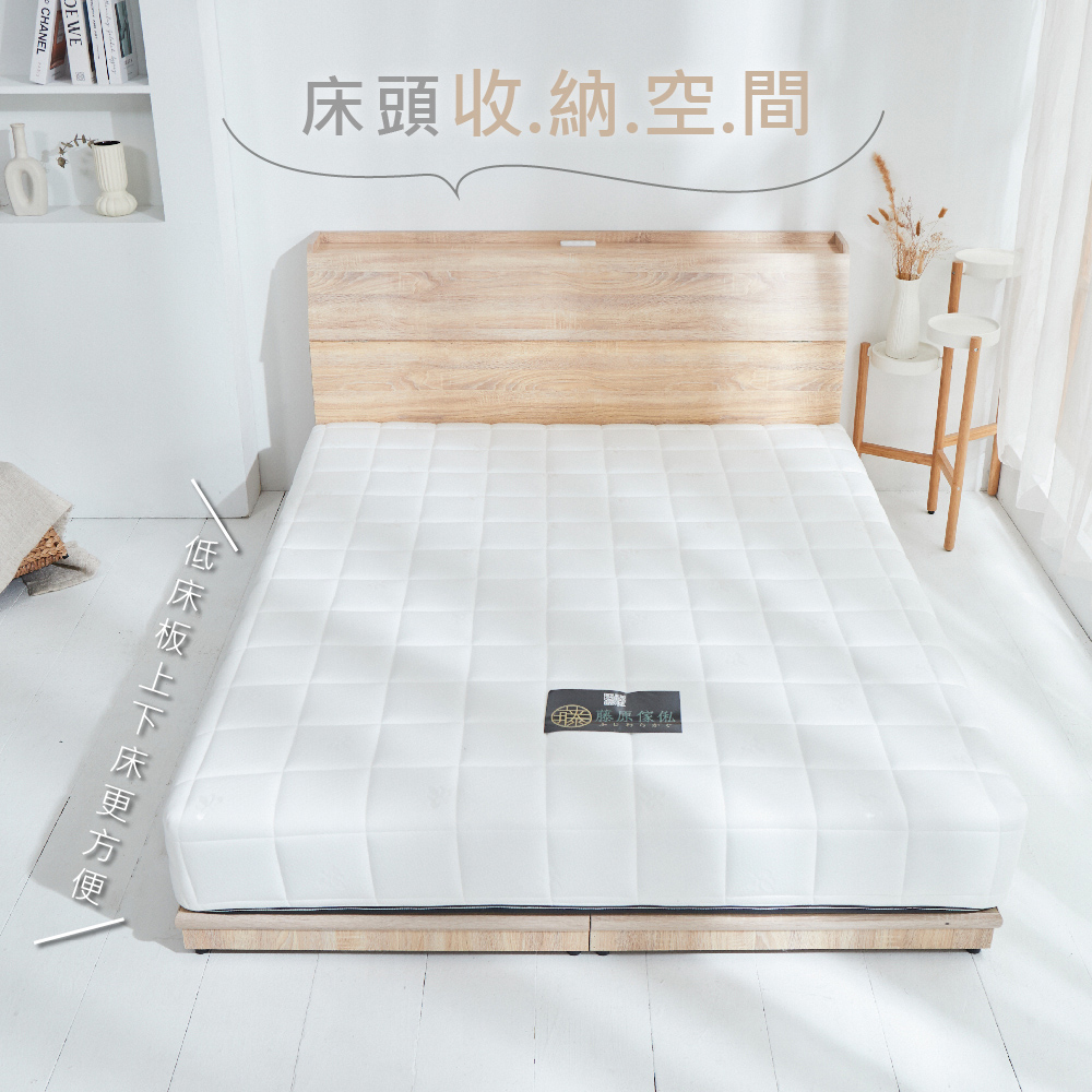 台灣製【藤原傢俬】日式風格三件式床組(床頭箱+低床底/床架+白色戀人床墊)