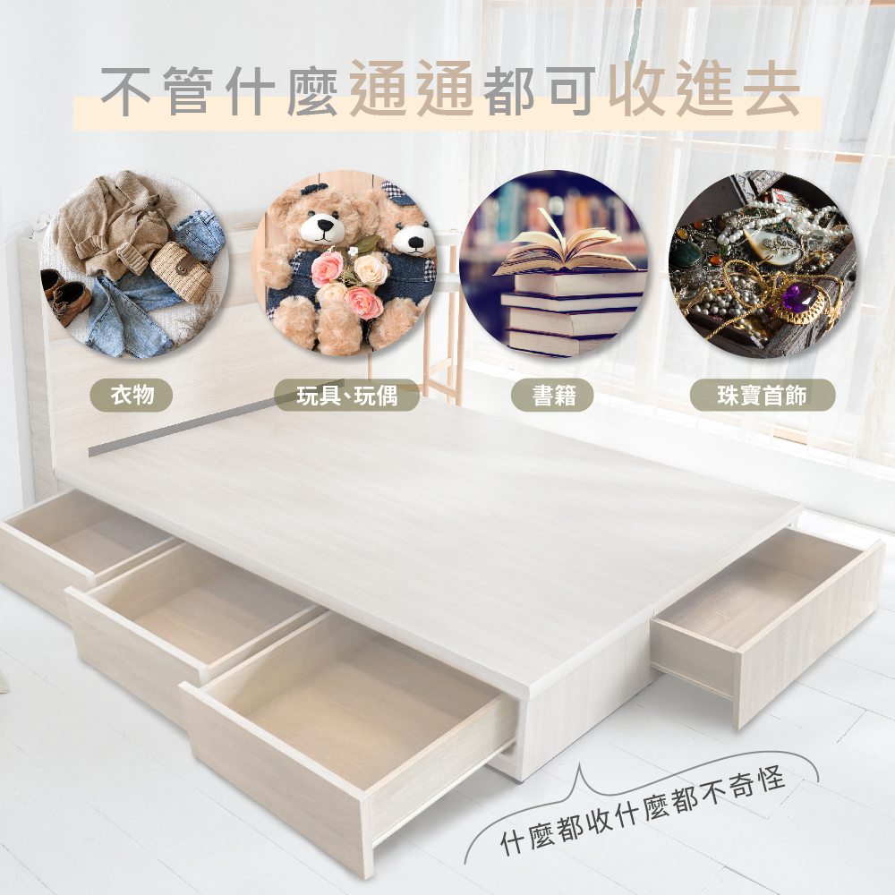 台灣製【藤原傢俬】6分木芯板4抽收納床組(遙控/觸控床頭+4抽床底/架)