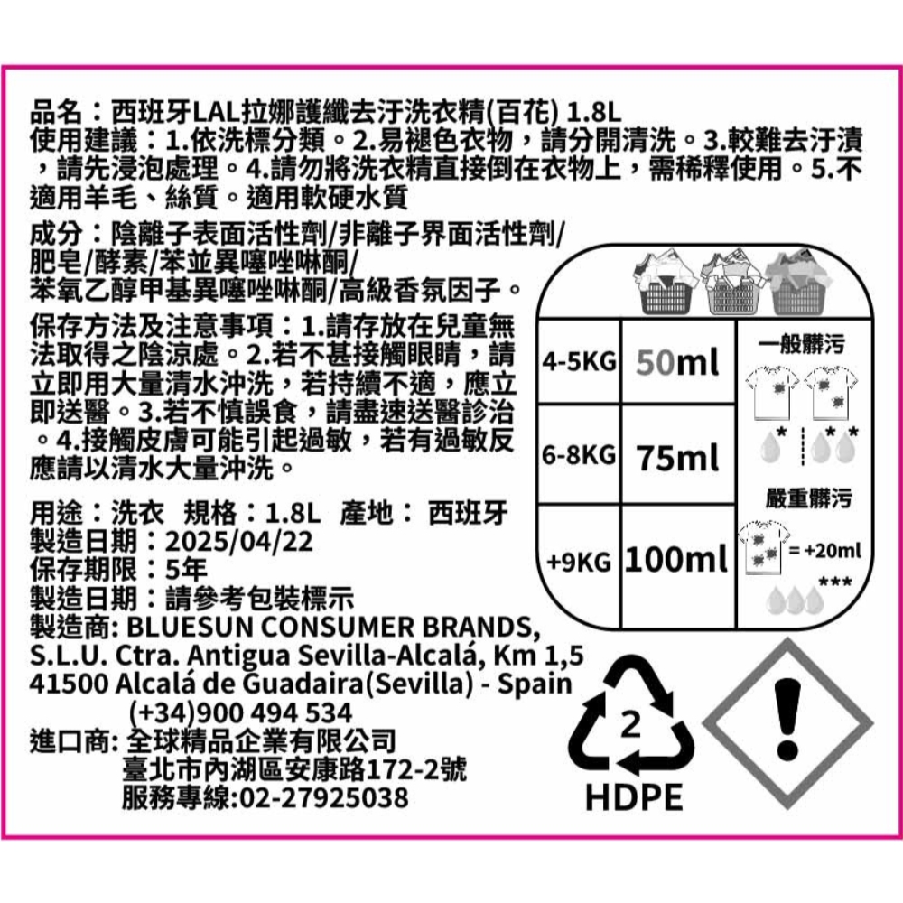 ◎Brand:西班牙拉娜 Lavandera ◎Specifications: 1.8L公升 x 1 x 1PC瓶