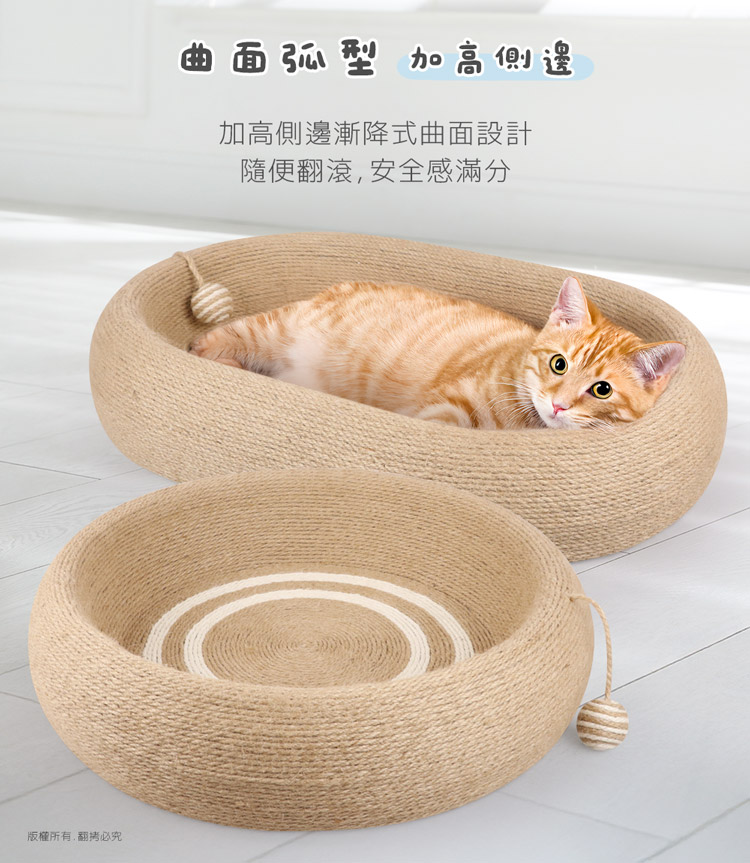 - 品 名:貓本屋 橢圓形 劍麻深睡大空間貓抓板貓窩