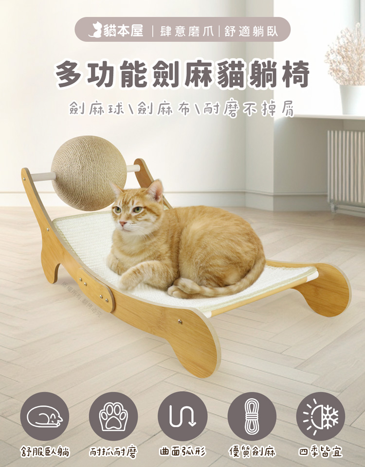 【貓本屋】耐磨不掉屑 劍麻球劍麻貓抓板躺椅-OO-P-SB27
