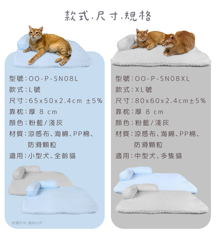 貓本屋 冰豆豆涼感寵物墊-XL號-OO-P-SN06XL-B-粉藍